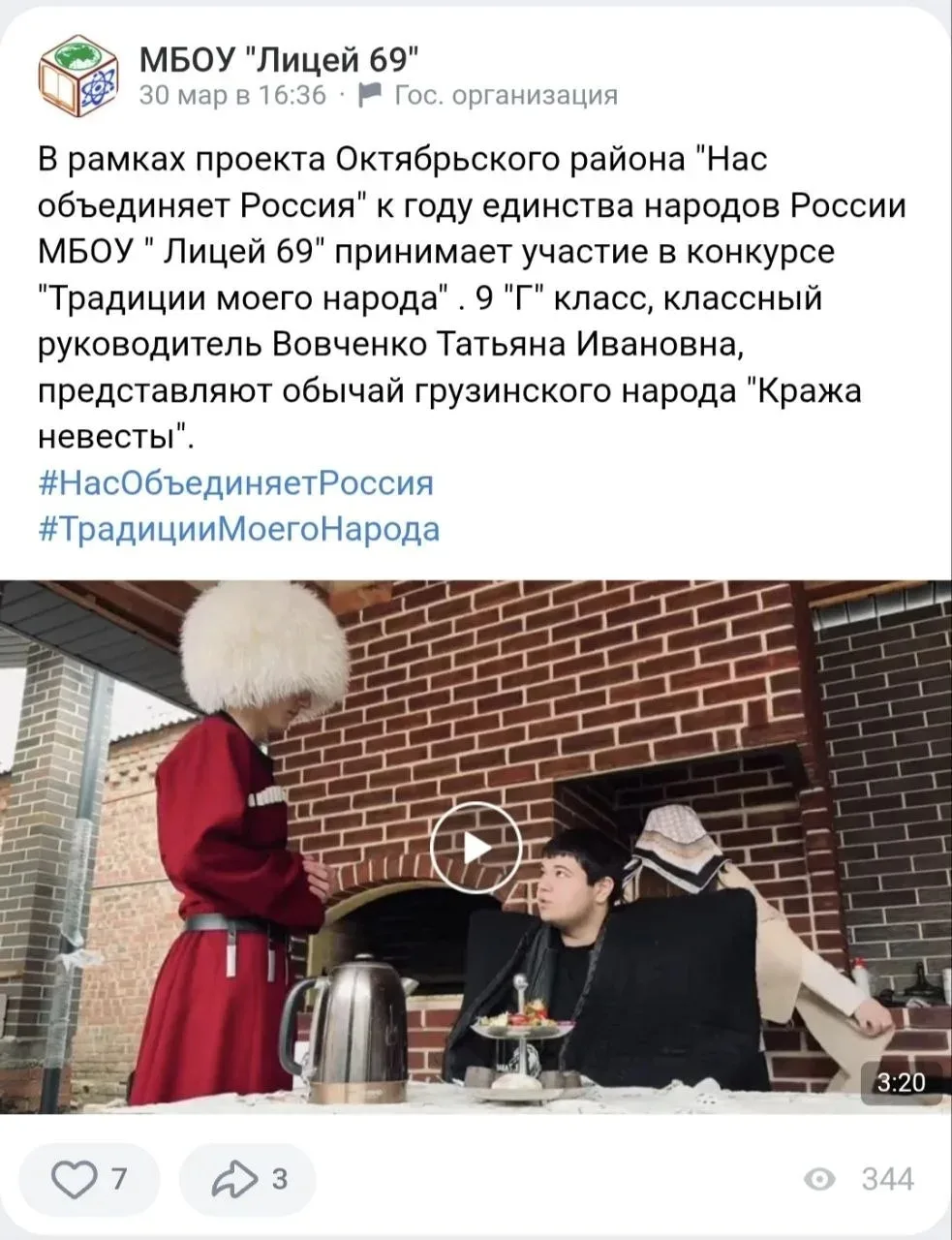 Пост уже осторожно удален со страницы ростовского лицея 69 (https://vk.com/public195567812). Но мы сохранили скрины.