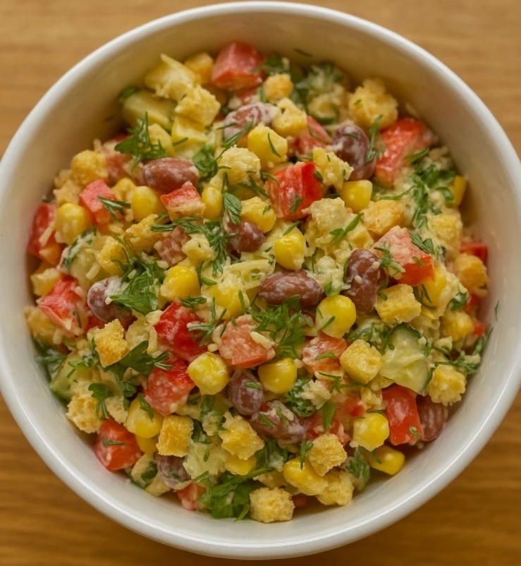 ❤ Салат с фасолью, кукурузой и сухариками!