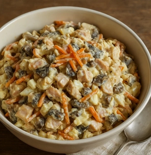 Сытный и ароматный салат, который отлично подойдёт как для семейного ужина, так и для праздничного стола. Грибы и копчёная курица делают его особенно вкусным, а корейская морковь добавляет пикантности.
