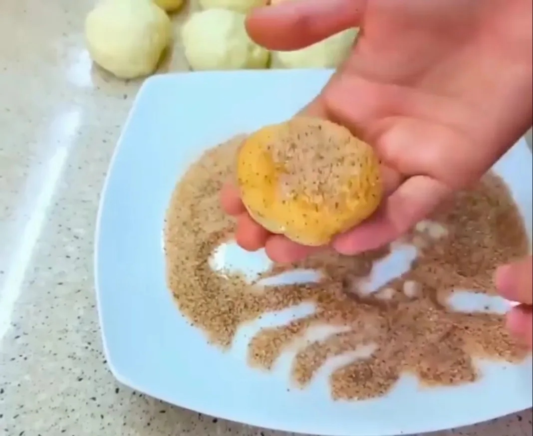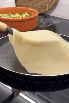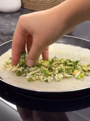 5⃣ Соберите края лепёшки к центру, закрепите их и аккуратно раскатайте.