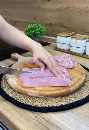 1⃣ Куриное филе обжариваю до румяной корочки, остужаю и нарезаю.
