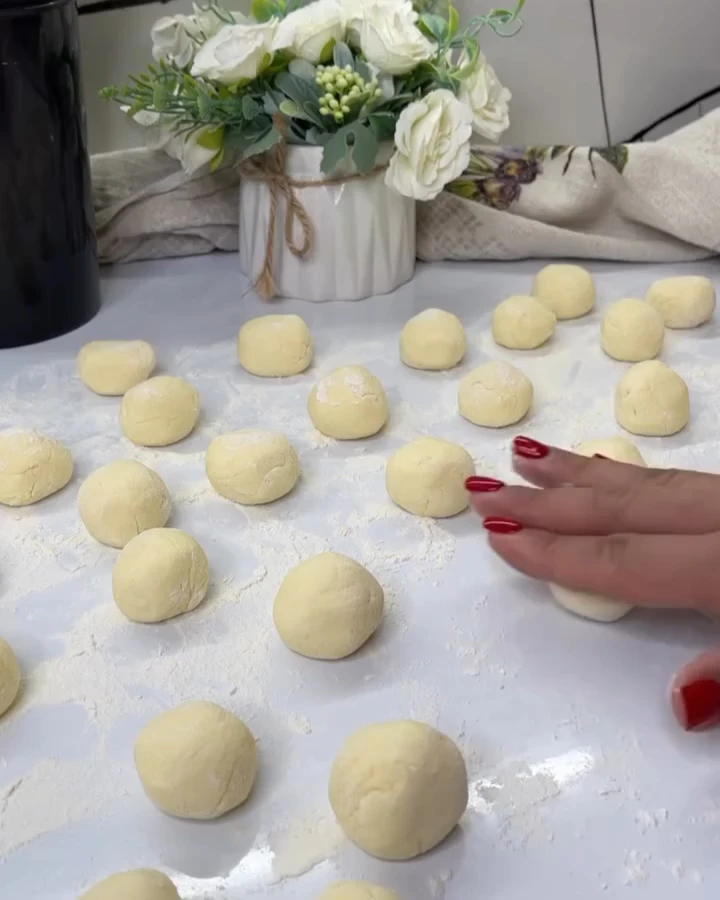 3⃣ Разделите тесто на 4 равные части, сформируйте из каждой клубочек.