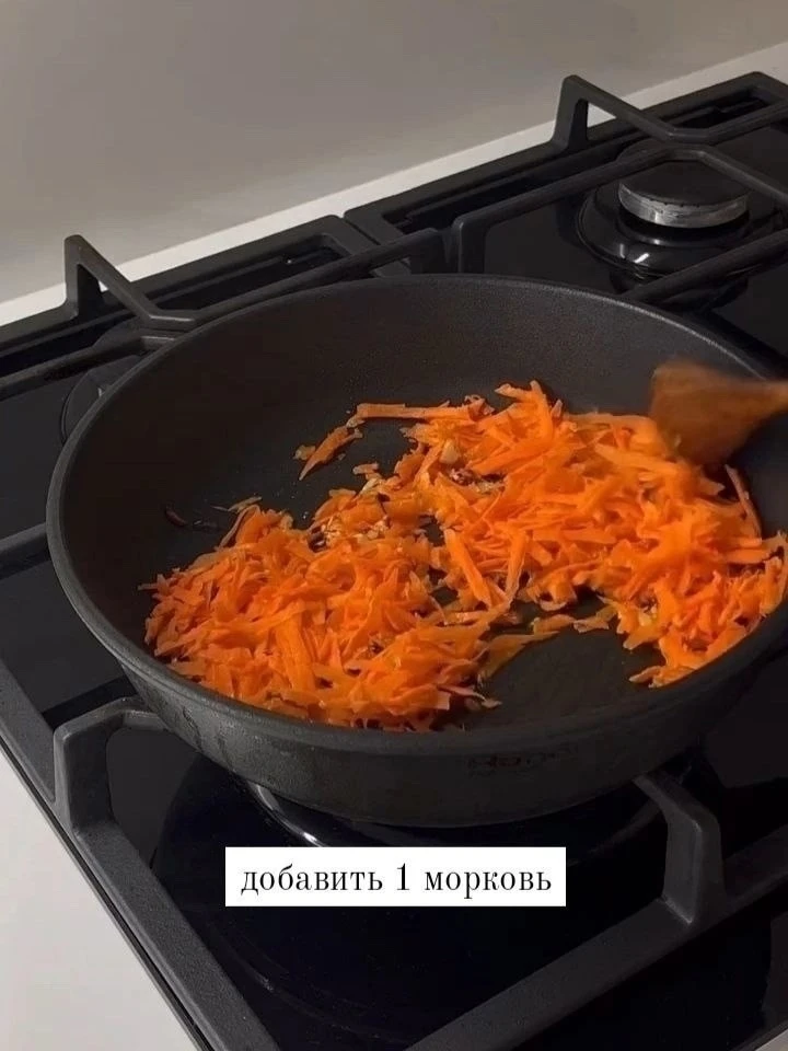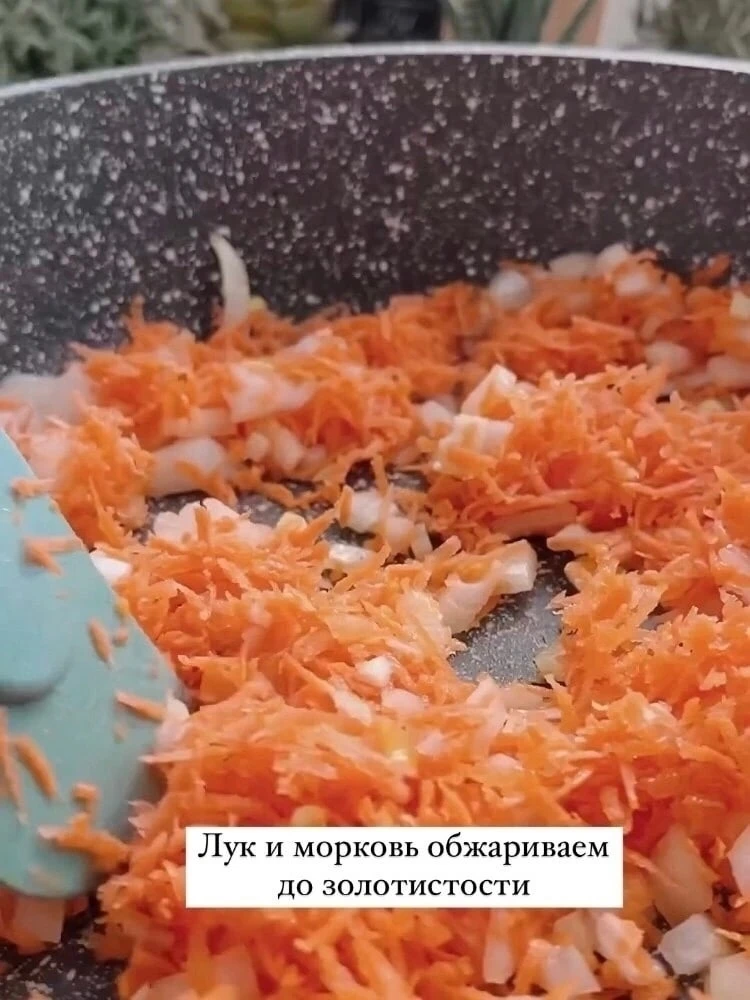 пока рис варится, на мелкой тёрке натереть морковь и лук (можно порезать, но я не люблю чувствовать вареный лук в еде😂);