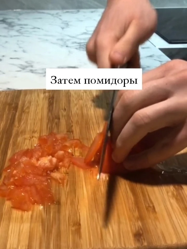 🔹Нарезаю помидоры, сладкий лук, кинзу и укроп 🌿 перемешиваю 👐