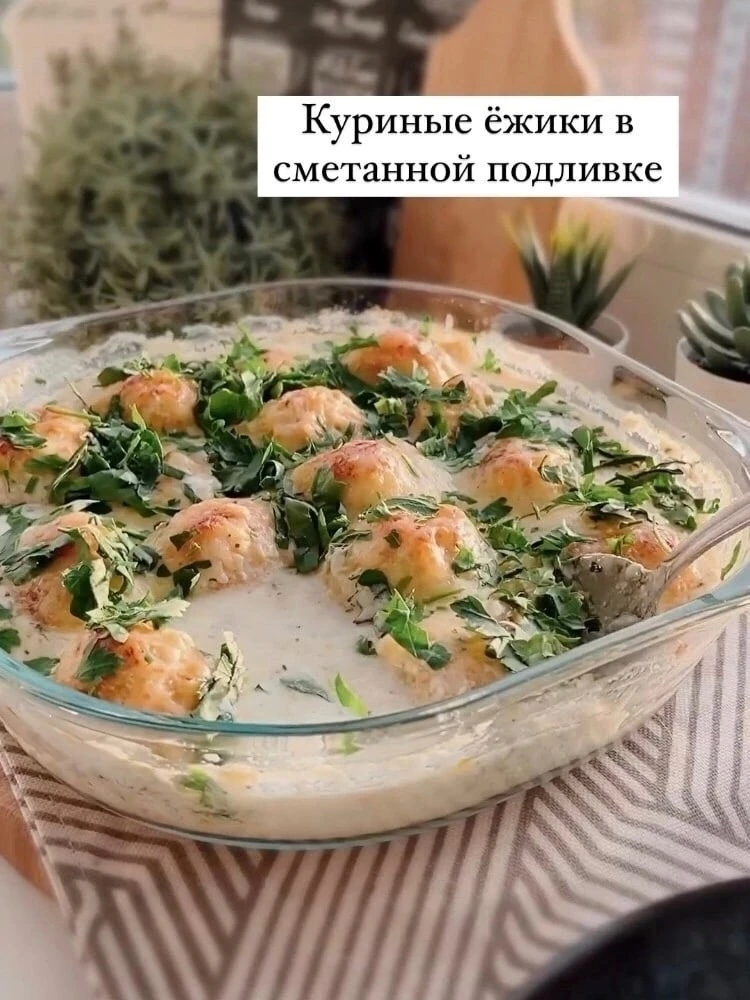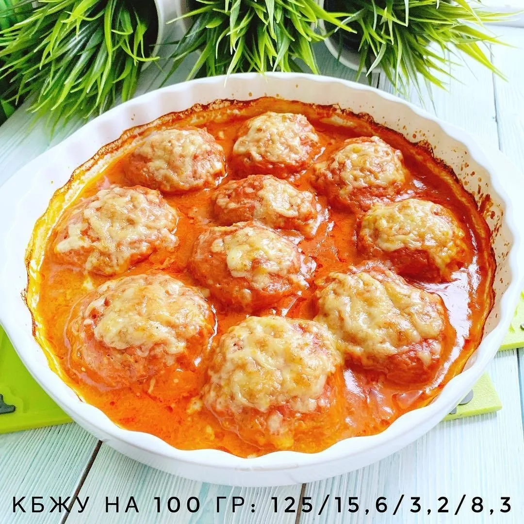 залить тефтели соусом и отправить в духовку на 25 мин;