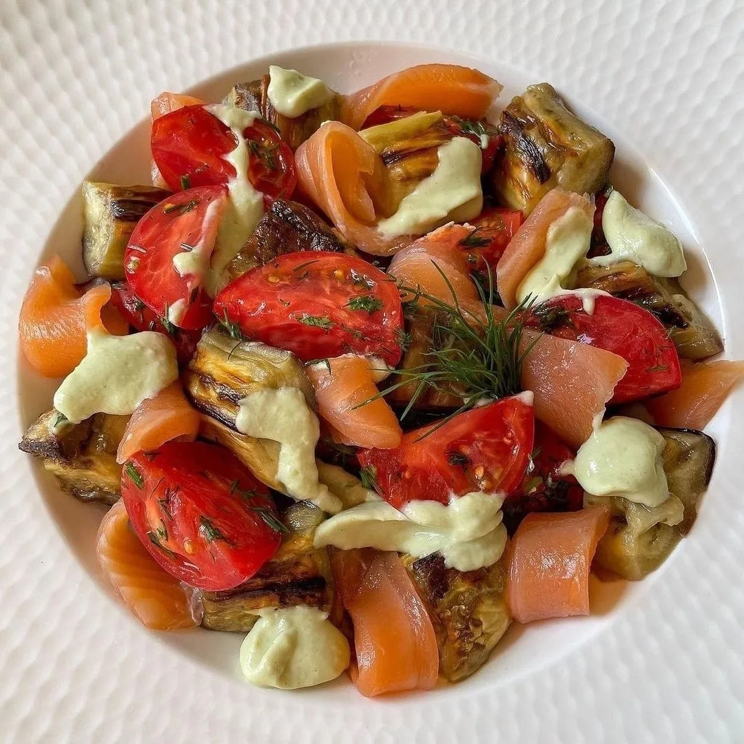 Салат с запеченными баклажанами, семгой и невероятным соусом 👌