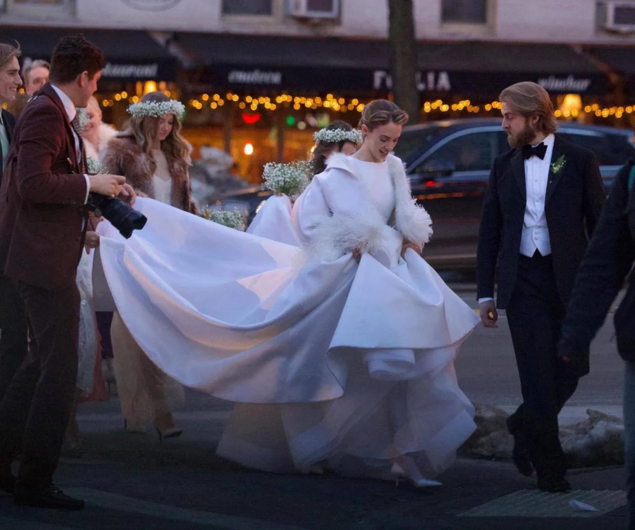 Праздник прошел в Нью-Йорке в День Святого Валентина. Среди гостей были знаменитые родители невесты — Ума Турман и Итан Хоук, а также коллеги Майи по сериалу, где она сыграла Робин: Финн Вулфхард, Гейтен Матараццо, Калеб Маклафлин, Сэди Синк, Наталия Дайер, Чарли Хитон и Джо Кири.
