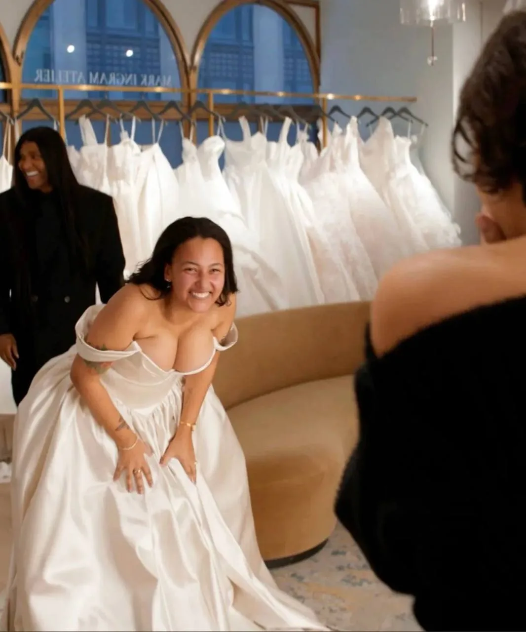 Студия A24 вместе с нью-йоркским ателье Mark Ingram устроили трогательный момент для девушки, у которой скоро свадьба. Во время примерки платья к невесте присоединился стилист Ло Роуч, после чего неожиданно появилась и сама Зендея. Когда девушка выбрала наряд, оказавшийся дороже запланированного бюджета пары, актриса сказала, что оплатит его сама.