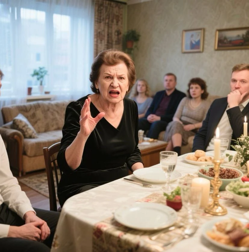 Марина поправила рукав нового платья и в последний раз критически осмотрела себя в зеркале. Тёмно-синий шёлк красиво облегал фигуру, жемчужные серьги дополняли образ — она хотела выглядеть безупречно на шестидесятилетии свекрови. За спиной раздались торопливые шаги.