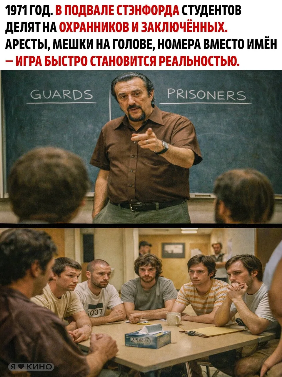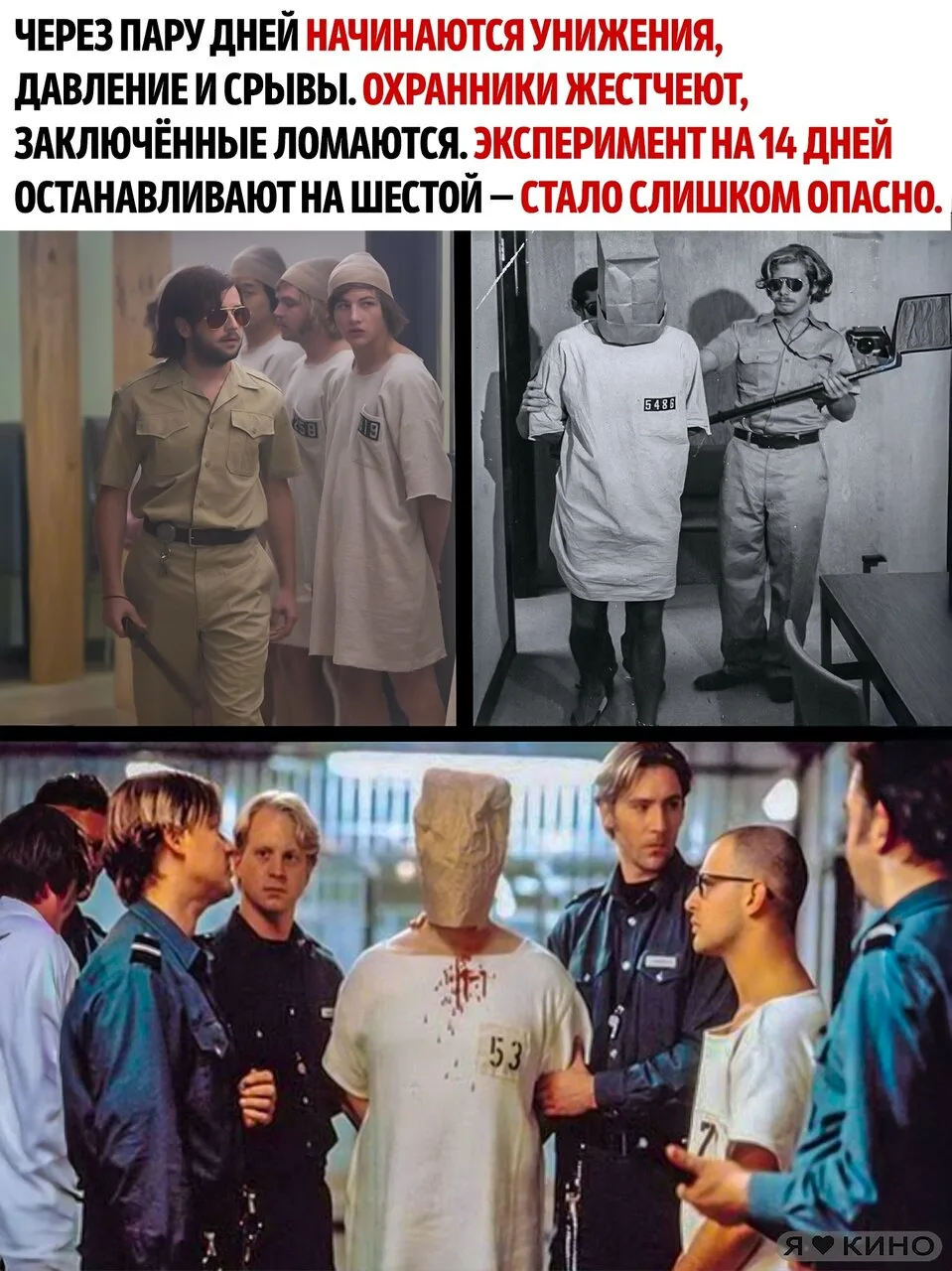 - 24 студента разделили на две группы: одни стали заключёнными, другие — охранниками. Им выдали форму и закрыли в импровизированной тюрьме. Уже через несколько дней ситуация вышла из-под контроля. Охранники начали унижать и психологически ломать заключённых. Обычные люди быстро начали проявлять жестокость. Некоторые участники не выдерживали давления.