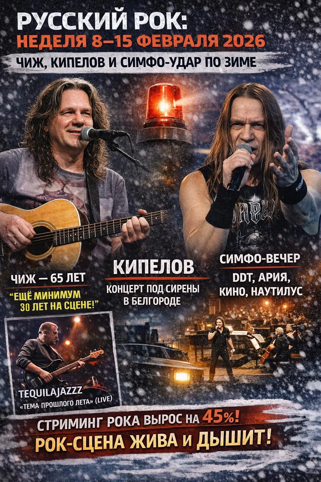 Русский рок: неделя 8–15 февраля 2026 — Чиж, Кипелов и симфо-удар по зиме