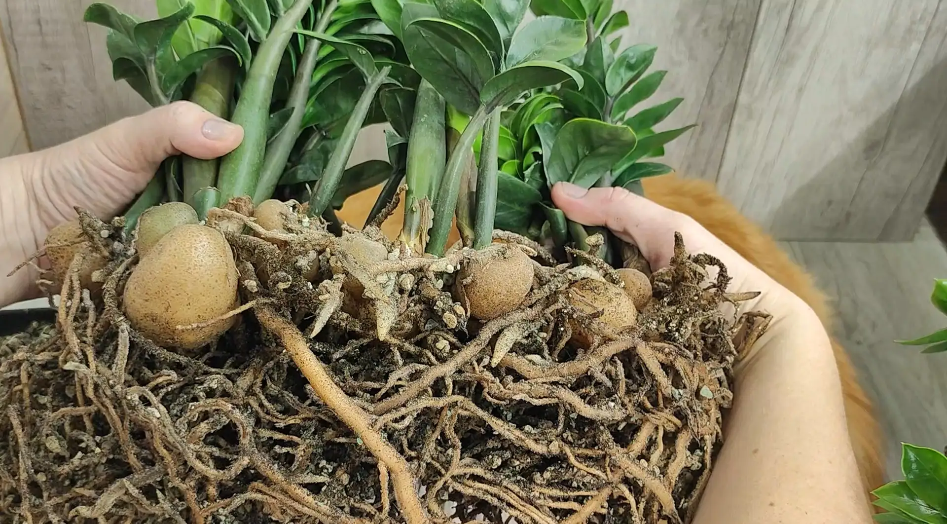 НЕ давно, я пересаживала замиокулькас зензи в чистую лечузу+ цимус. Результаты просто ошеломляющие, не вероятные, и такого роста еще не было. Клубни с кулак, а корневая заполонила весь горшок и Горшок у меня погнуло - прям распирает со всех сторон. Поэтому я приняла решение, нужно срочно его пересадить в горшок 10 литров.
