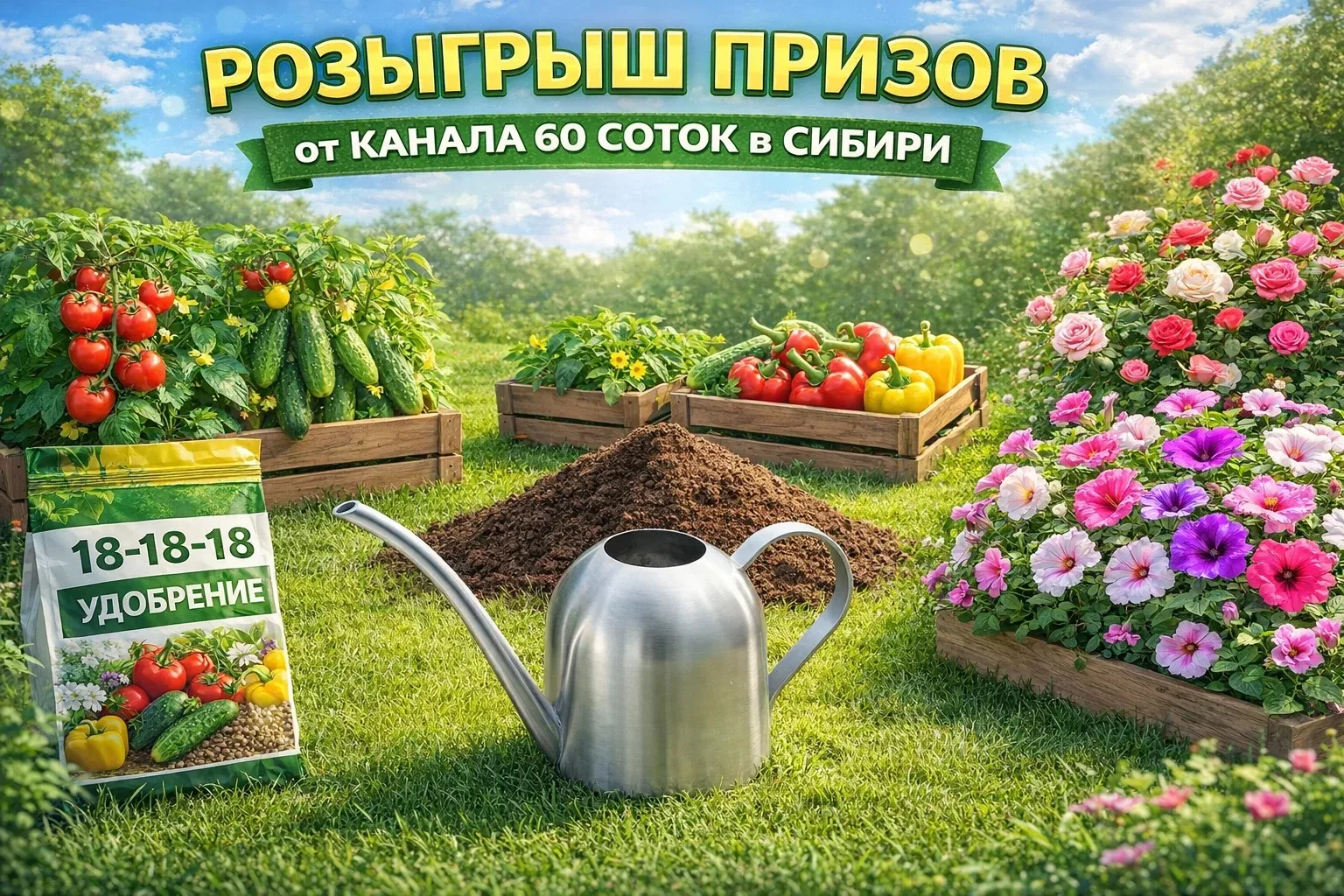 🔥🔥🔥СПЕШИТЕ УЧАСТВОВАТЬ! САМЫЙ МАСШТАБНЫЙ РОЗЫГРЫШ от КАНАЛА 60 СОТОК в СИБИРИ, ПРИЗ - ТОРФ 70 литров, ЛЕЕЧКА и УДОБРЕНИЕ!!!