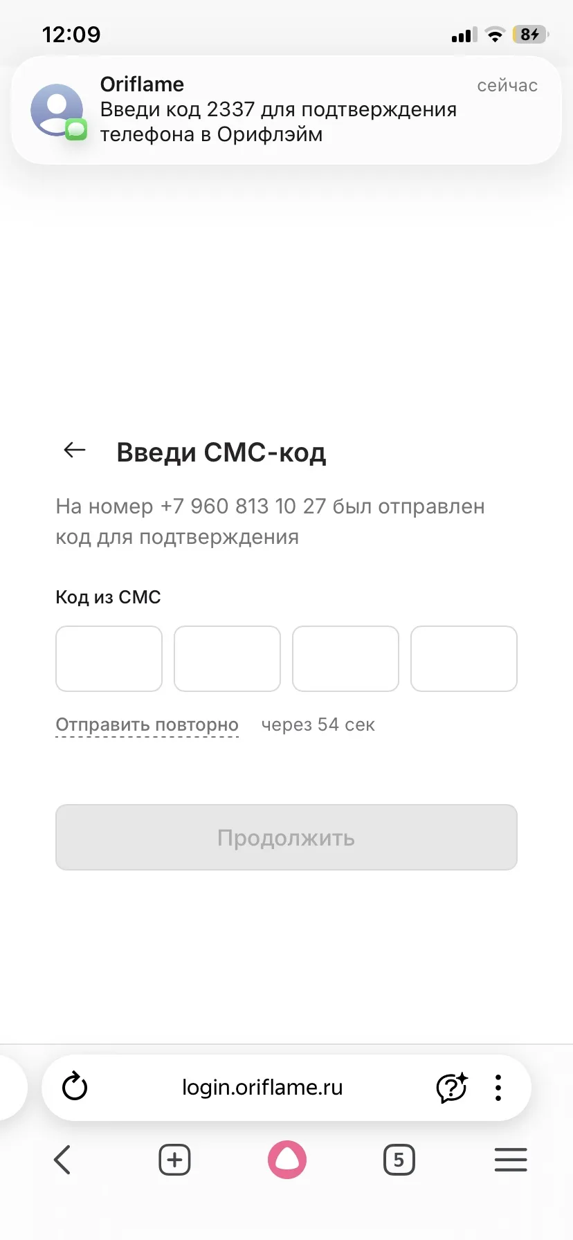 3️⃣ Вводим номер телефона, который у вас был при регистрации в Орифлэйм