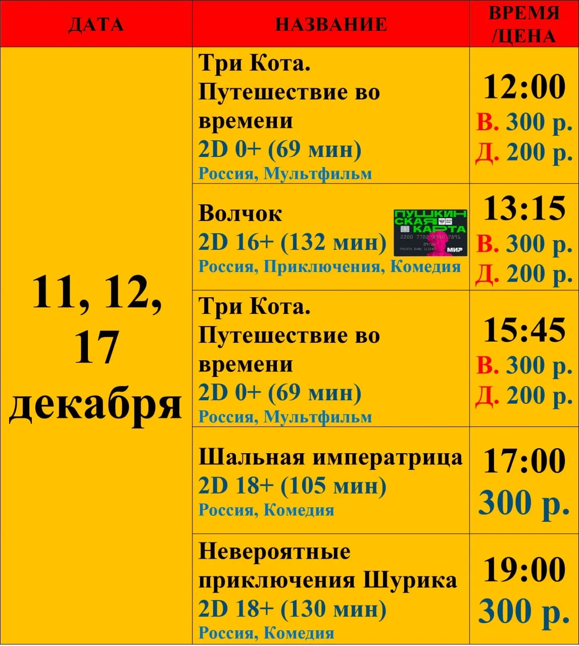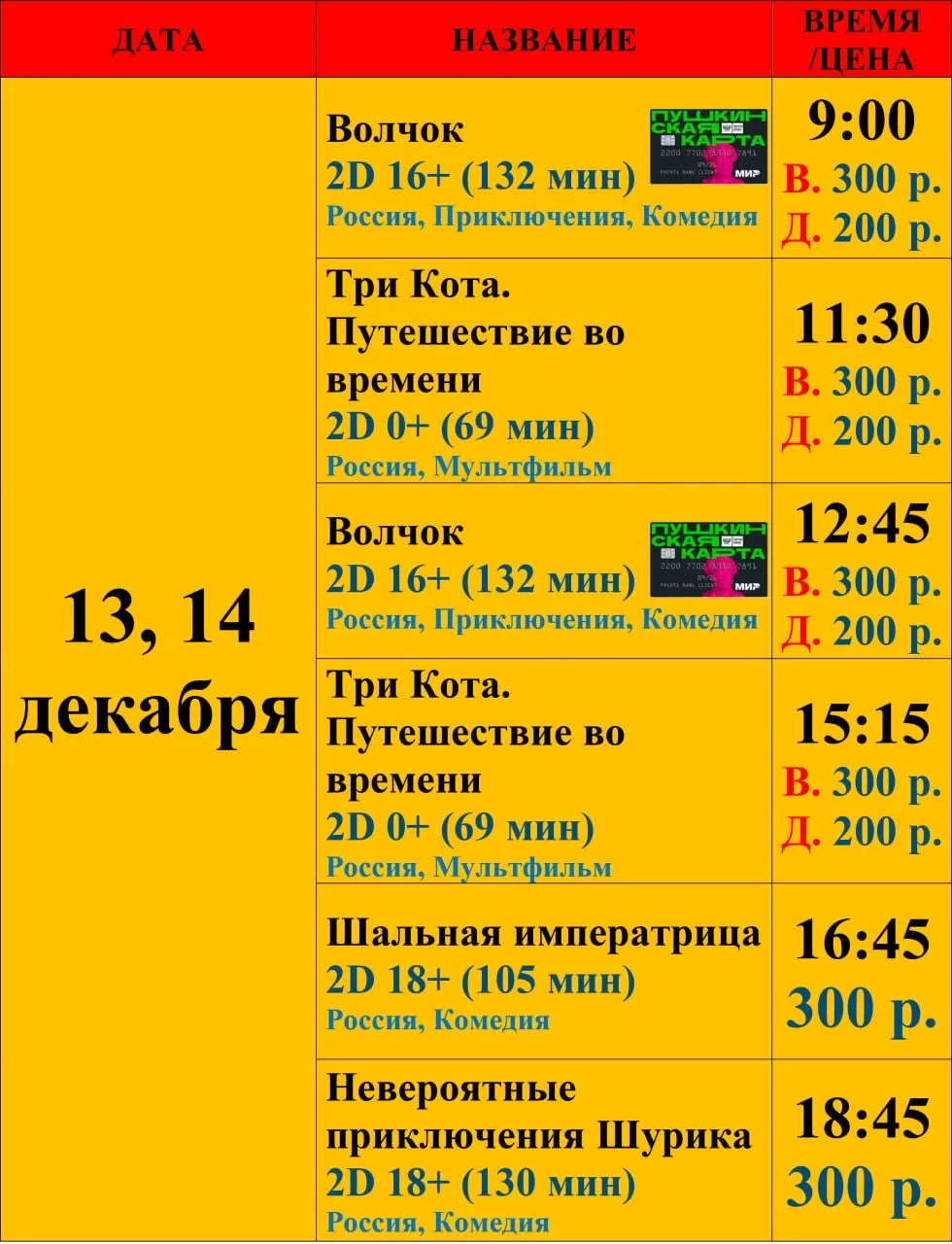 Внимание, изменение в расписании кинотеатра «Зенит»!