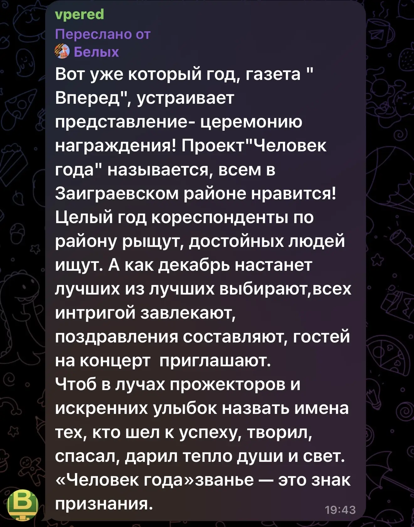 Друзья, до начала церемонии вручения премии «Человек года по версии газеты «Вперёд» остались считанные часы.