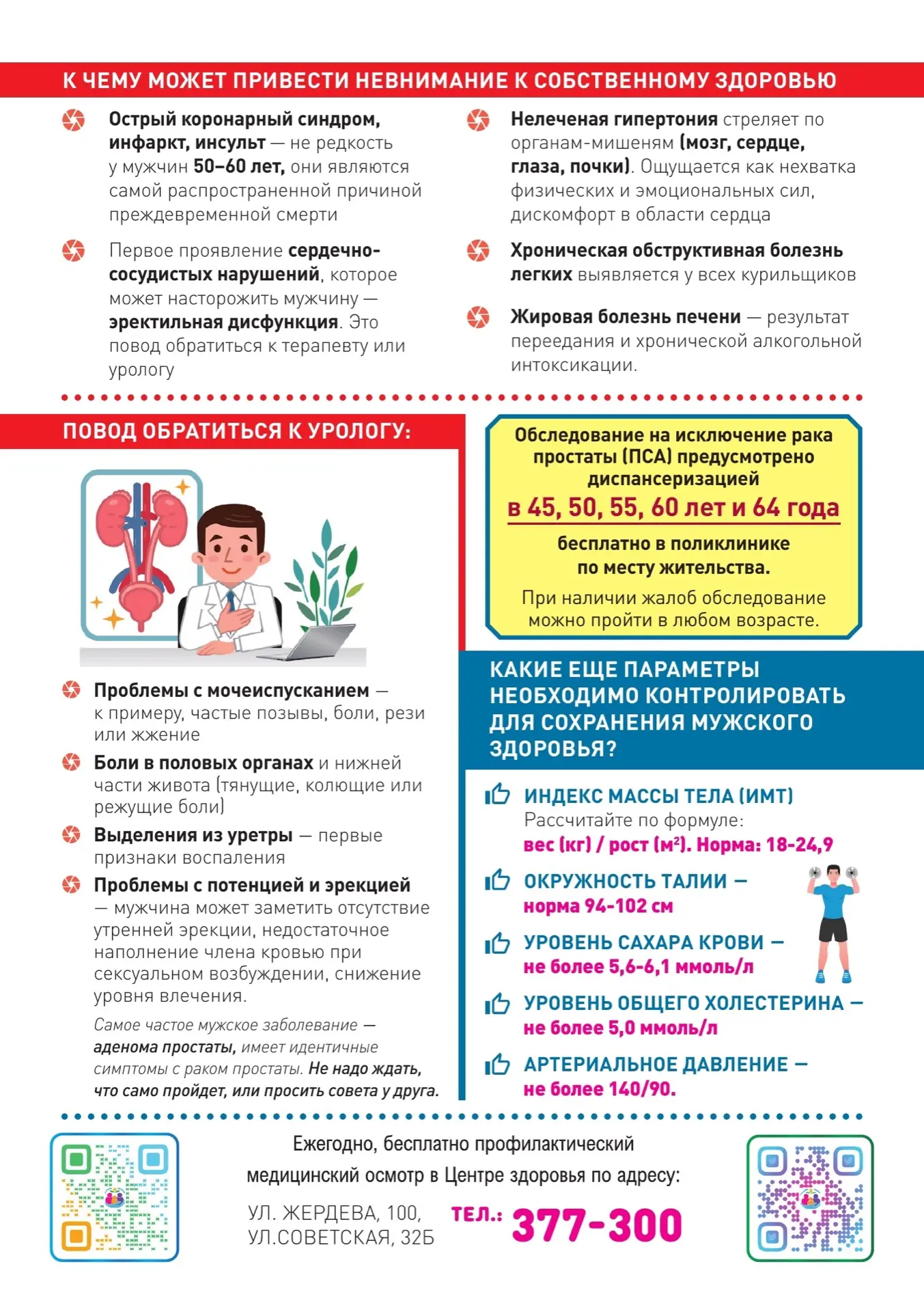 Забота о здоровье — обязанность каждого мужчины. С возрастом возникают специфические риски, о которых важно знать, чтобы вовремя принять меры.