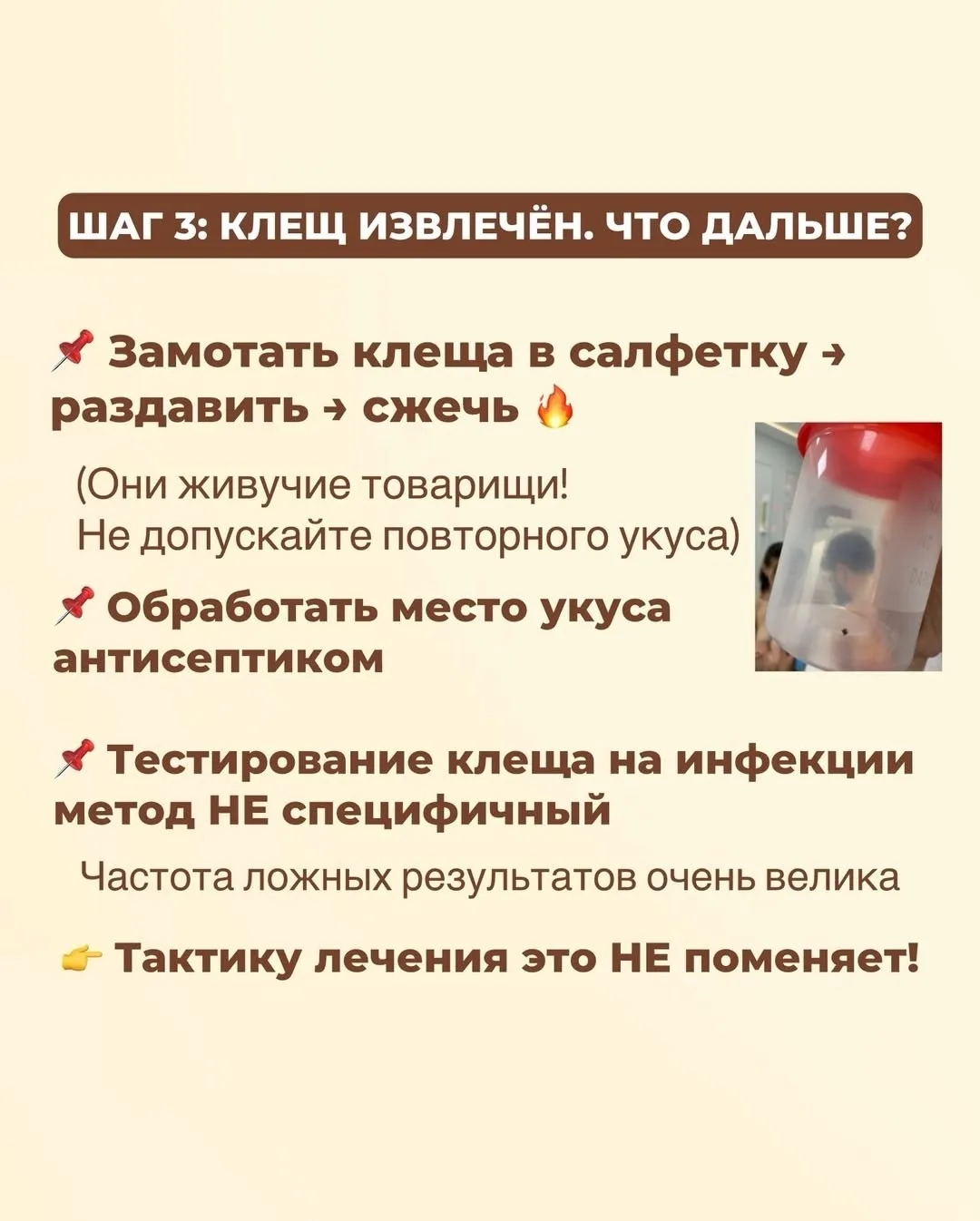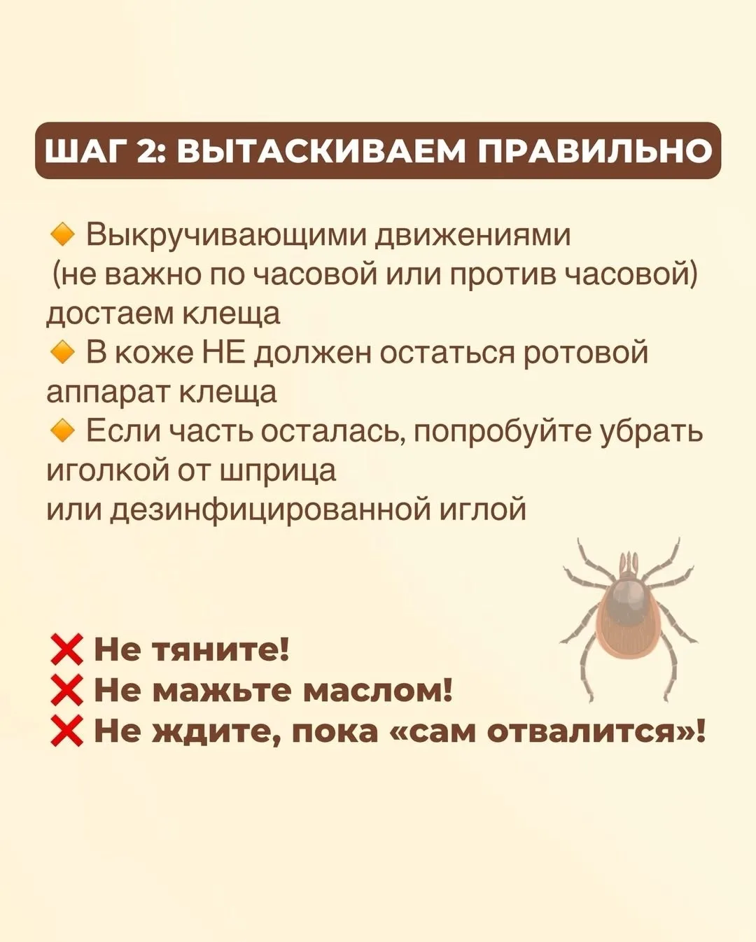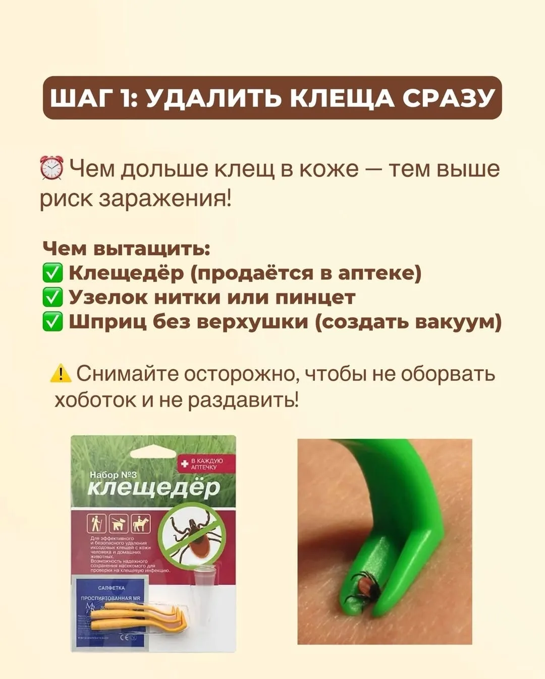 ✔️Главное правило: чем быстрее вы удалите клеща, тем ниже риск заражения.