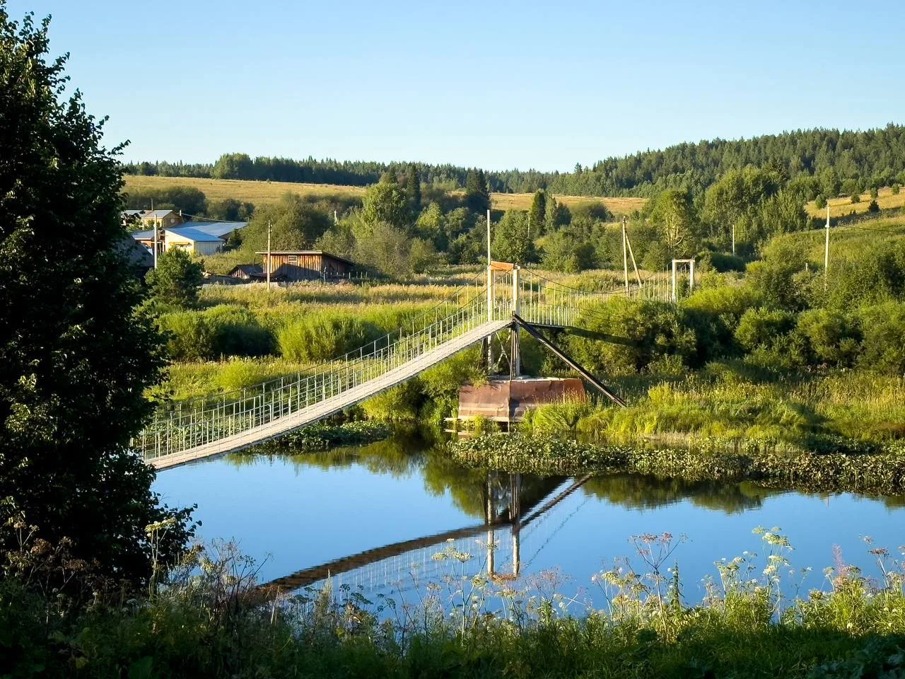 Если хочешь почувствовать настоящий уральский дух и увидеть одну из визитных карточек Чусовой, тебе точно в деревню Мартьяново. Её главная артерия — современный пешеходный навесной мост, который является единственной связью между двумя берегами.