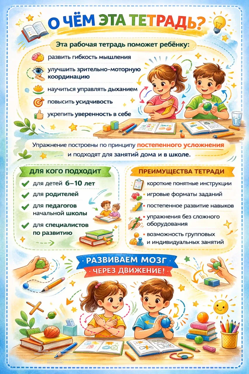 Регистрируйтесь по ссылке и получите в подарок гайд «10 базовых нейроупражнений, которые можно внедрить в любое занятие»: https://tglink.io/02fd5495509652?erid=2W5zFGDXeTT