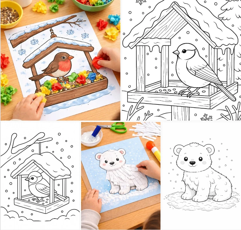 🤩 поделка - открытка - раскраска - зимняя - новогодняя🤭❄ 👇шаблон