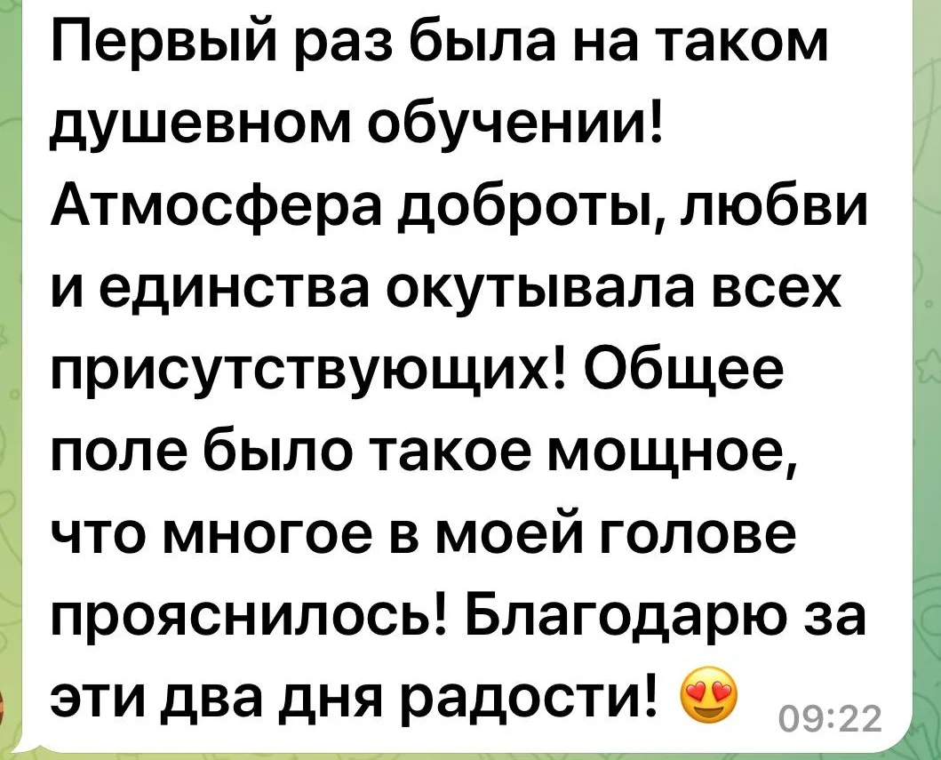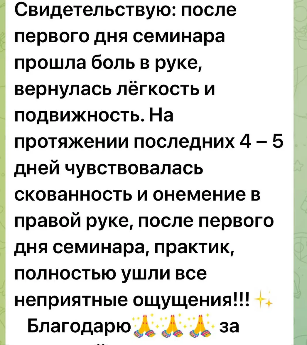 Это стопроцентно эффективная рабочая практика, посредством которой вы соединяетесь с потоком жизни. И ваша энергетика растёт, и беспокойство, страх, стресс уходят.