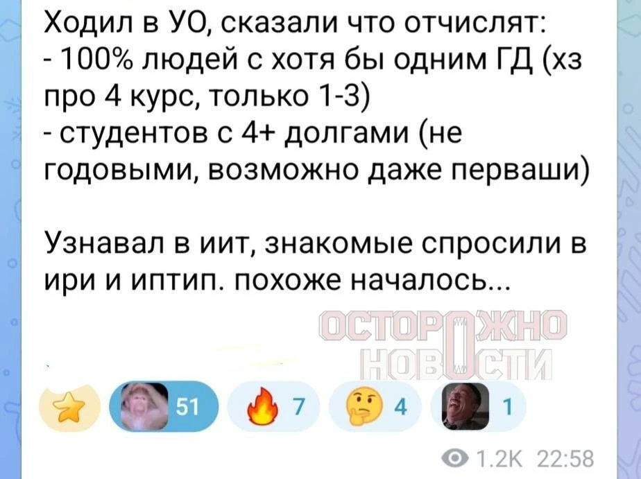 По словам студентов, достаточно проблематично уложиться в эту дату, так как им «ещё нужно успевать учиться, преподаватели могут быть буквально только один раз в неделю, а одной-двух комиссий мало для закрытия всех долгов». Учащиеся добавили, что нововведение появилось после активной агитации службы в войсках БПЛА для студентов, у которых есть долги.