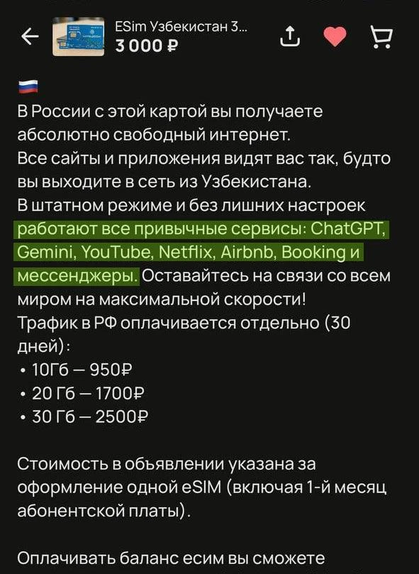 eSIM из Узбекистана, Казахстана и Таджикистана работают без ограничений — в России на них грузятся все сайты.