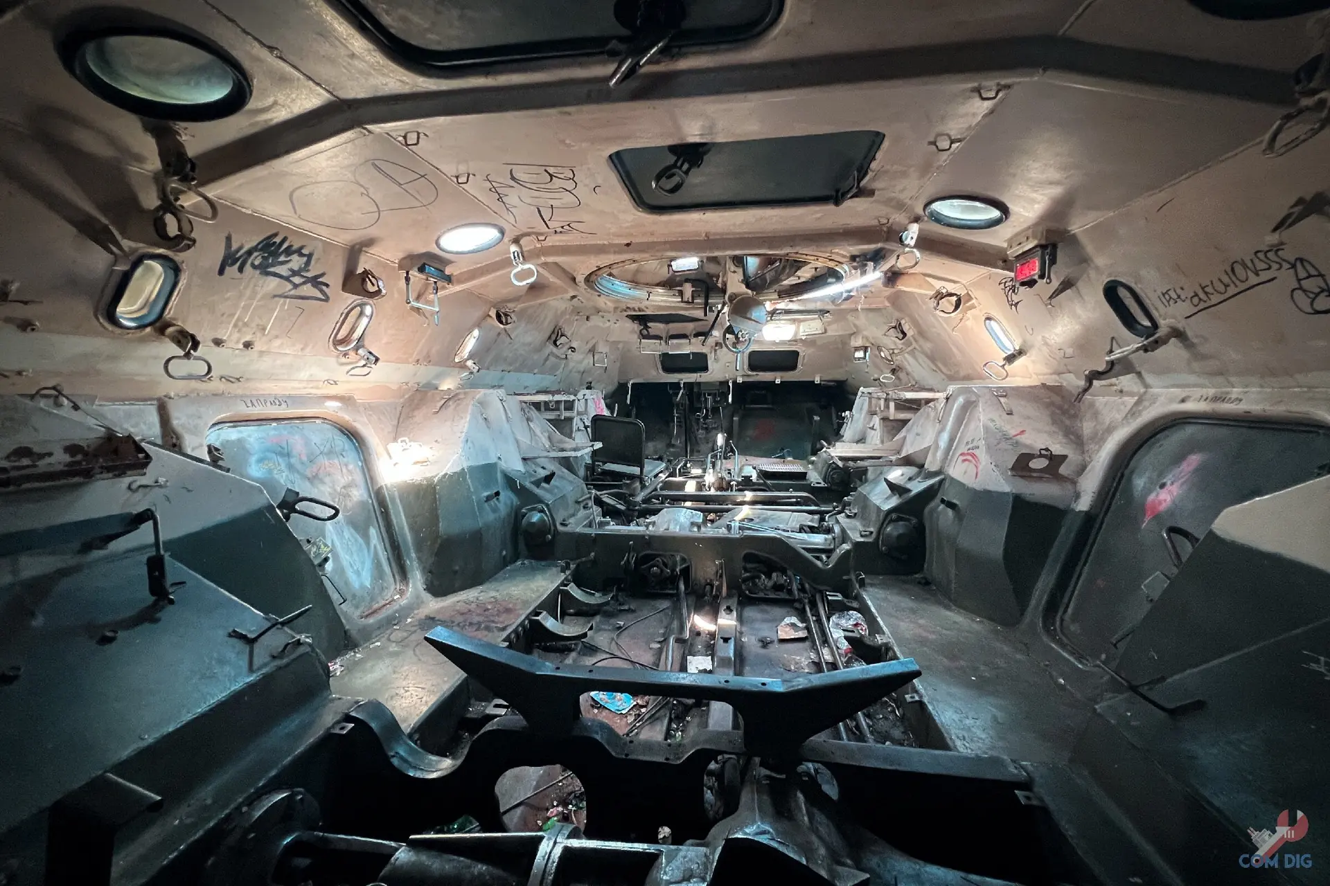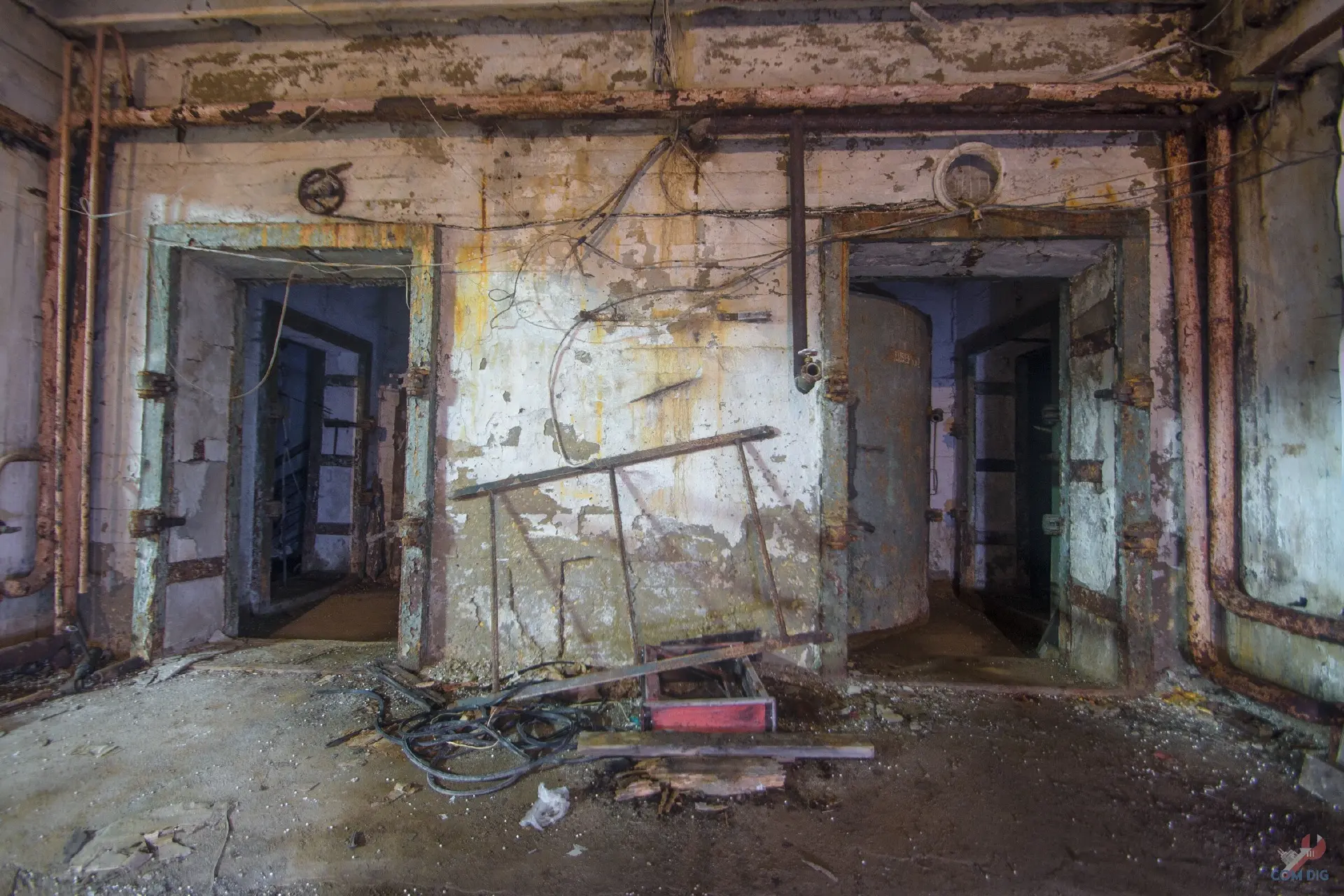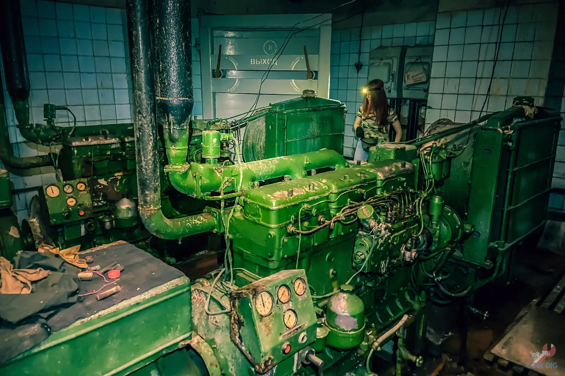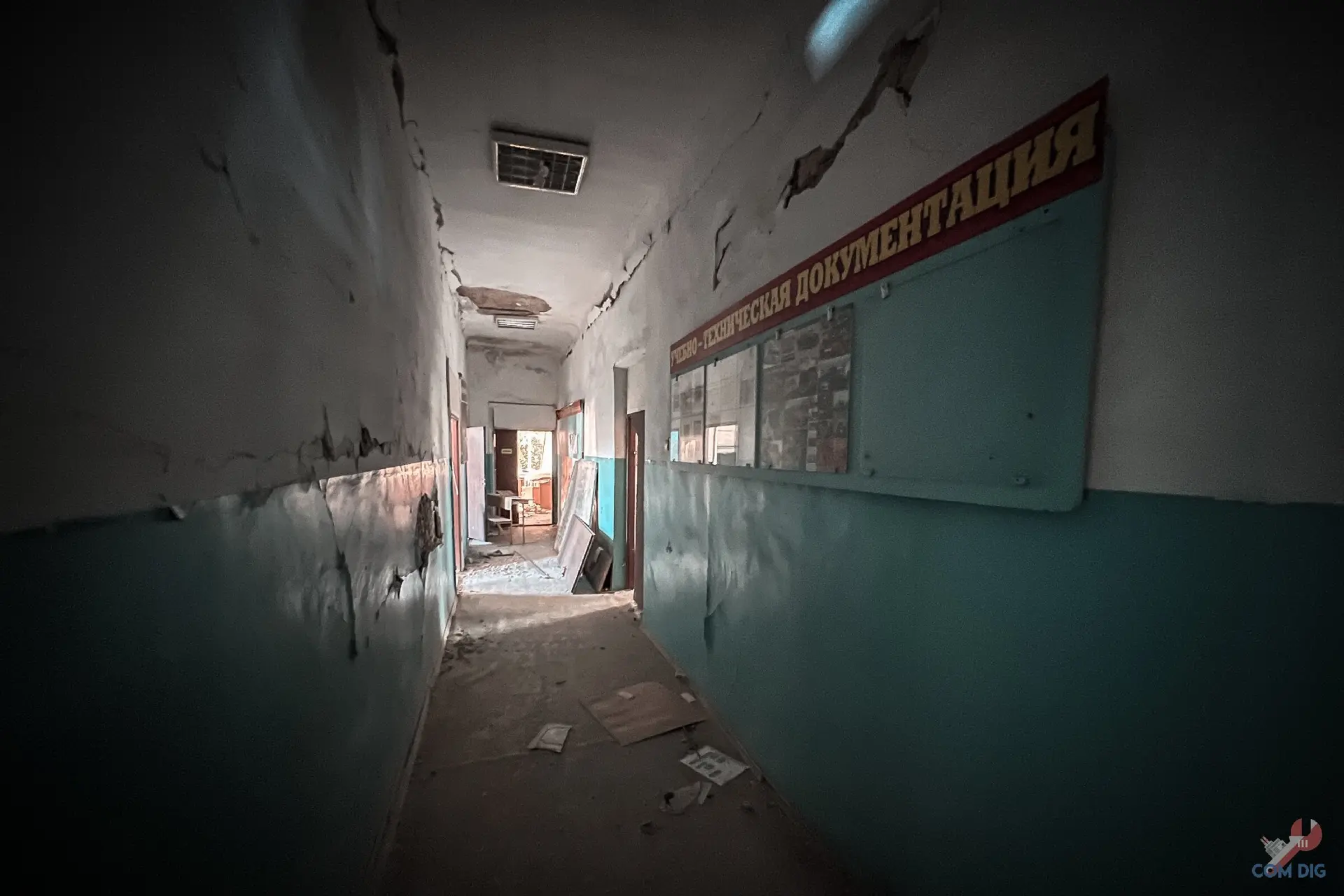 Самое удивительное, внутри всё осталось на своих местах. В кабинете пункта управления, где должен был работать руководящий состав завода, до сих пор стоят телефоны, коммутаторы, висят карты с обозначением важных объектов.