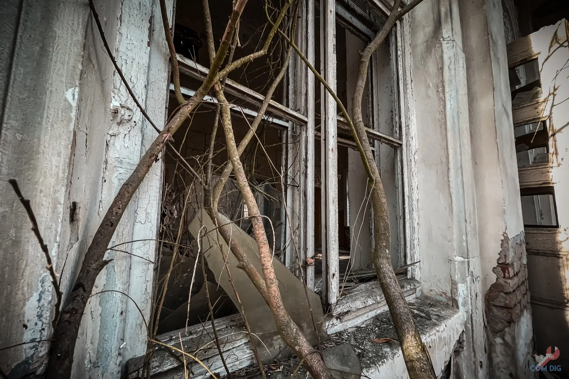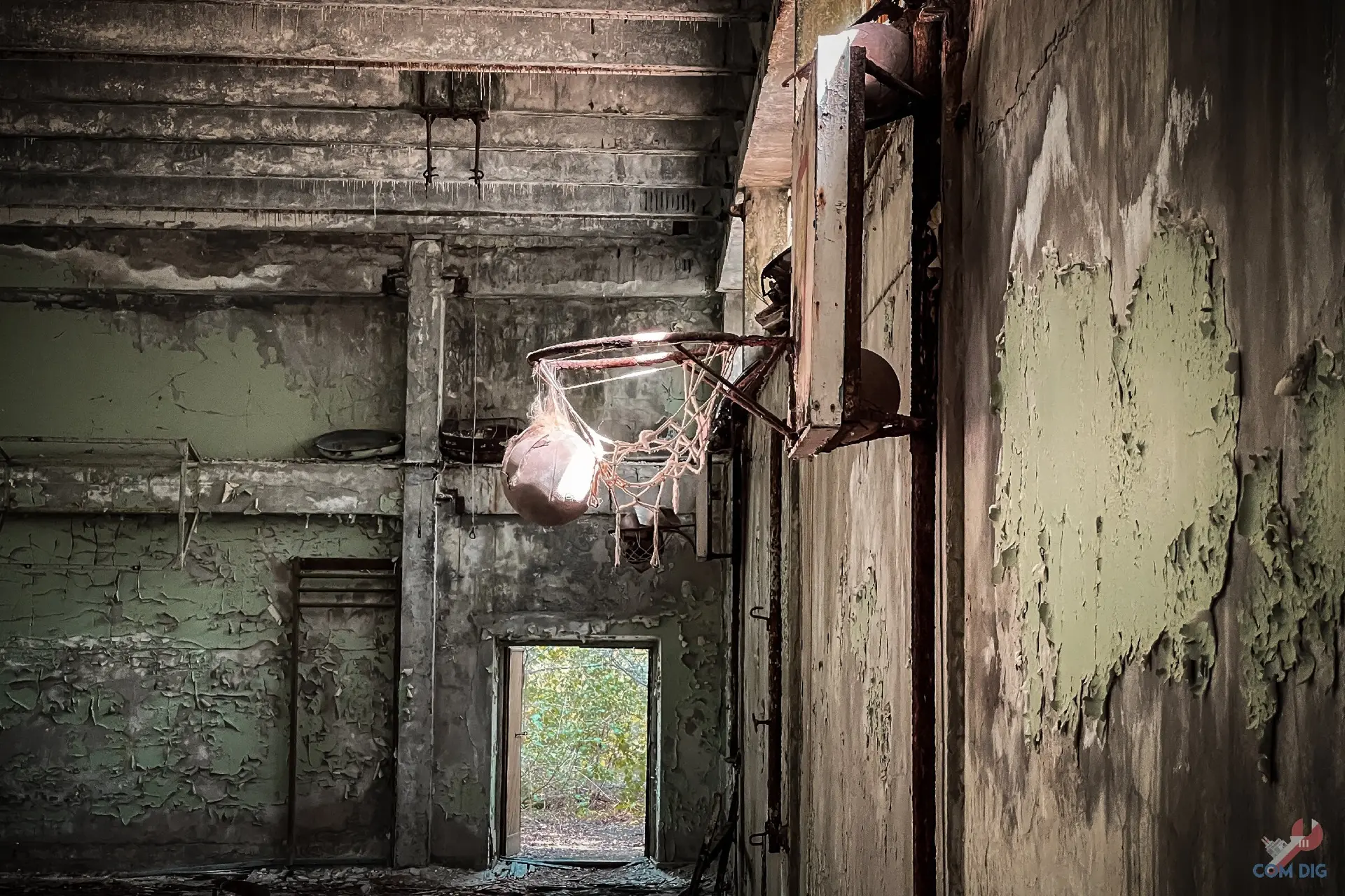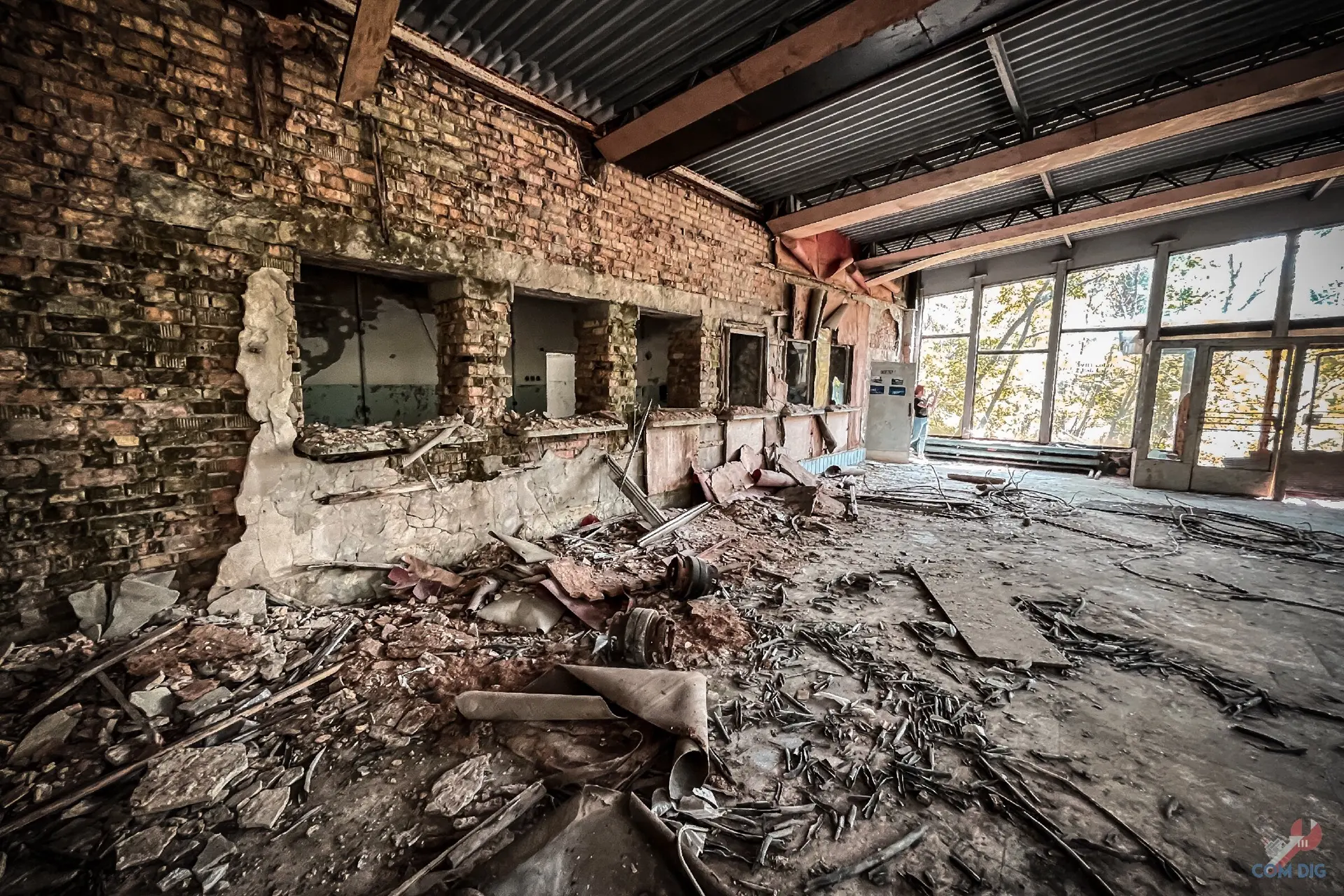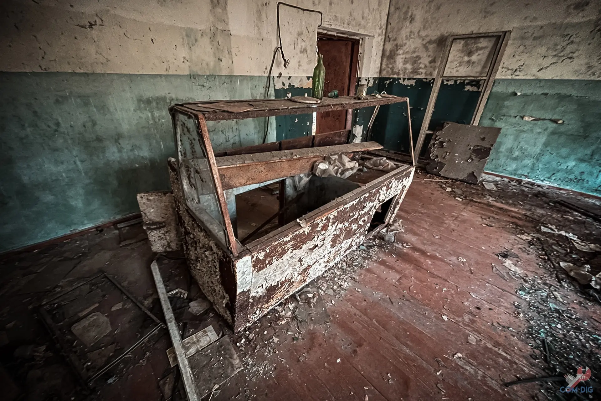 И это главная черта наших заброшек. В отличие, например, от Фукусимы, где вещи десятилетиями лежат на своих местах, в странах бывшего Союза выносят всё подчистую. Даже напольные доски, не особо брезгуя радиацией. История этого магазина закончилась не из-за катастрофы, а из-за людских рук, оставивших после себя лишь голые стены.
