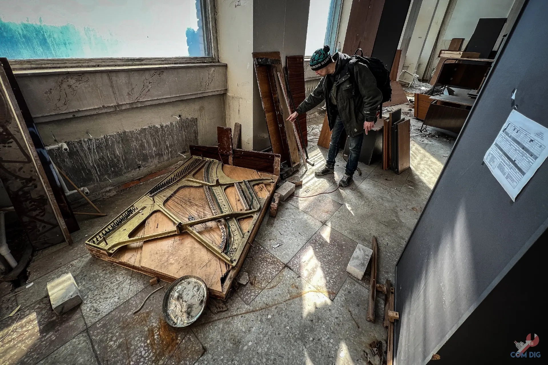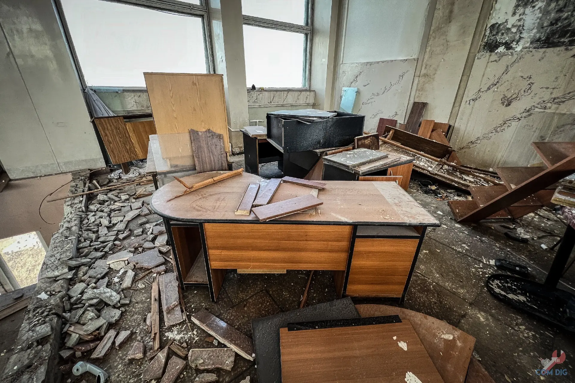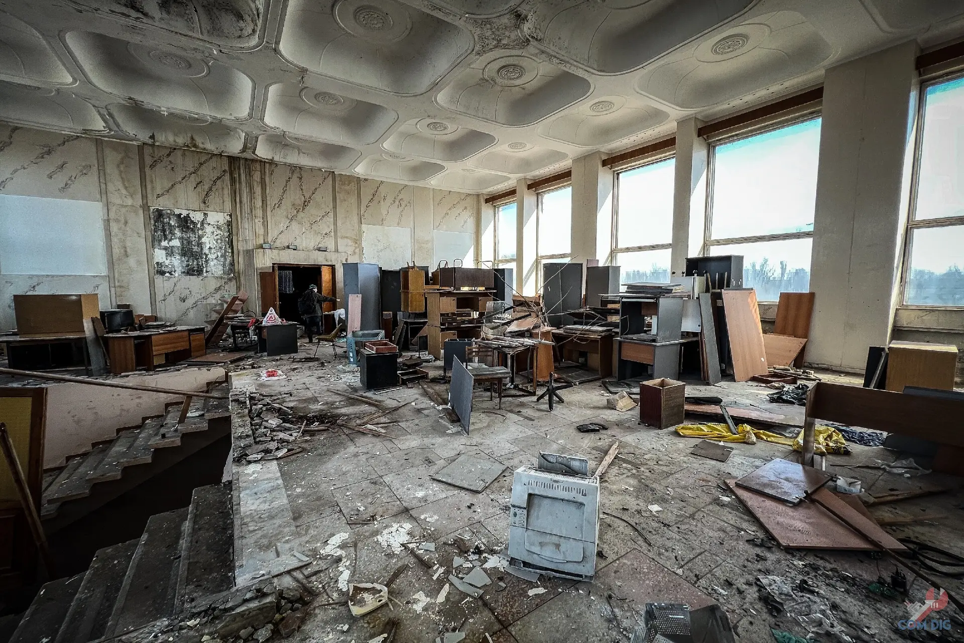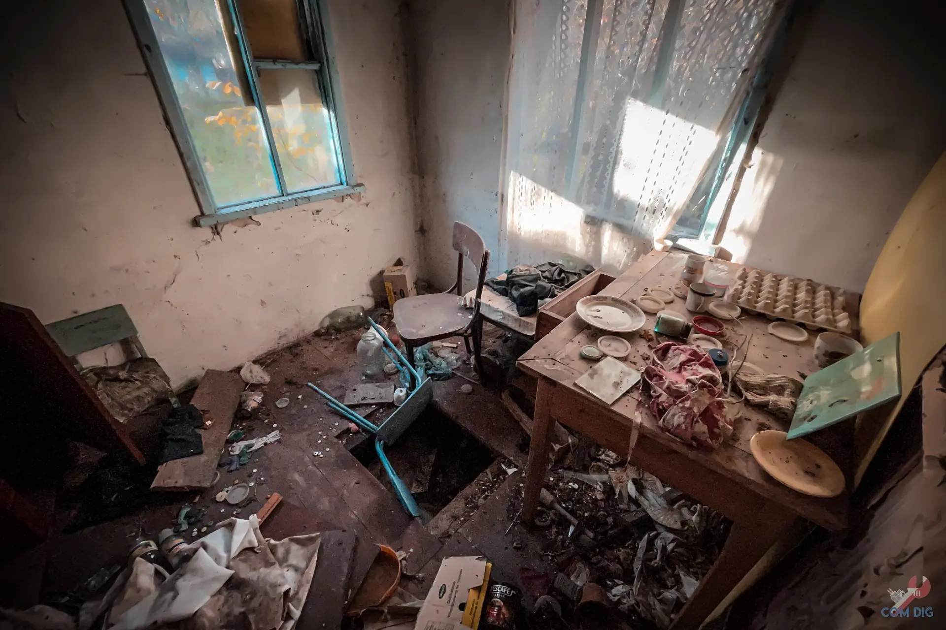 И это главная черта наших заброшек. В отличие, например, от Фукусимы, где вещи десятилетиями лежат на своих местах, в странах бывшего Союза выносят всё подчистую. Даже напольные доски, не особо брезгуя радиацией. История этого магазина закончилась не из-за катастрофы, а из-за людских рук, оставивших после себя лишь голые стены.