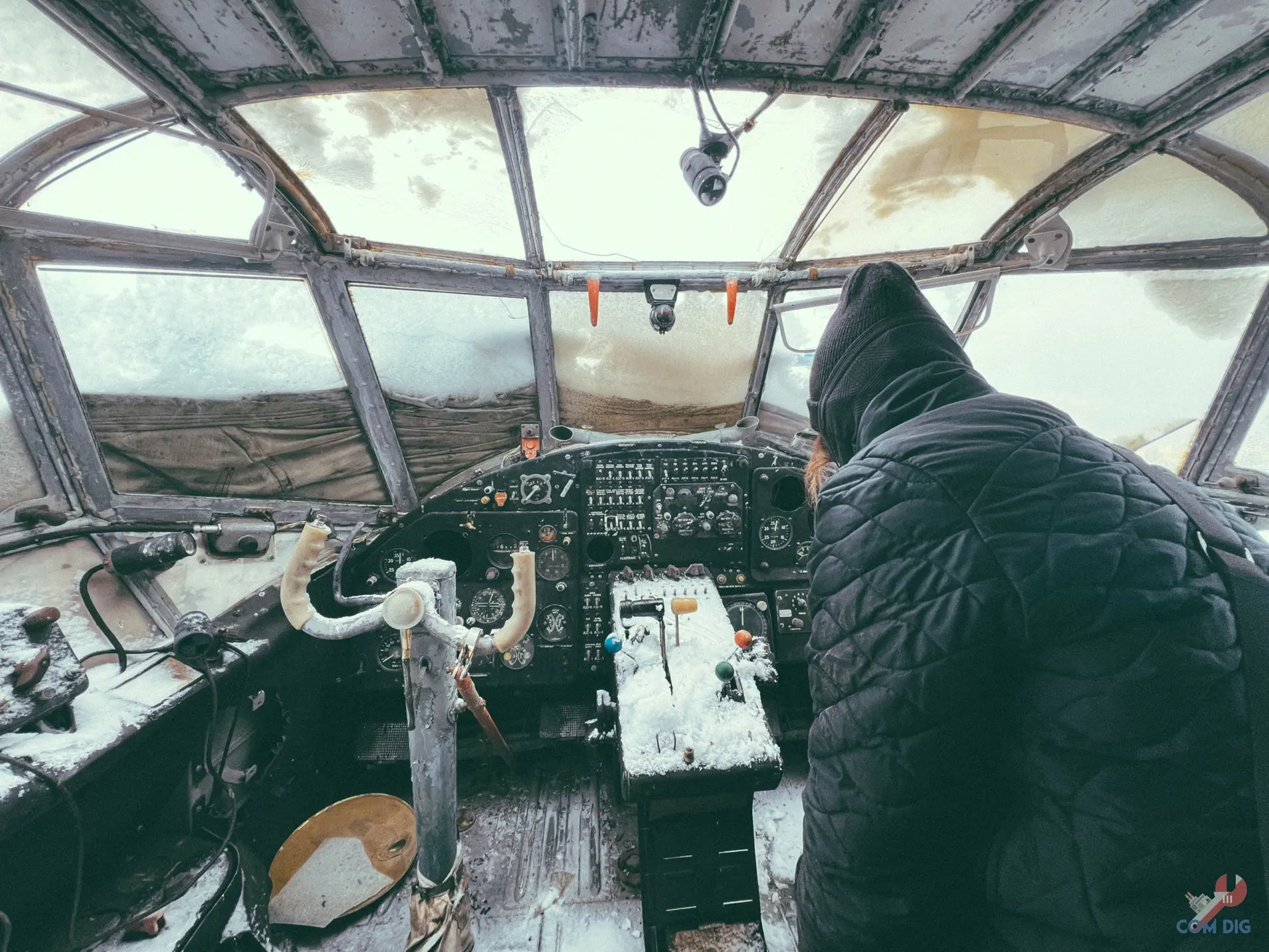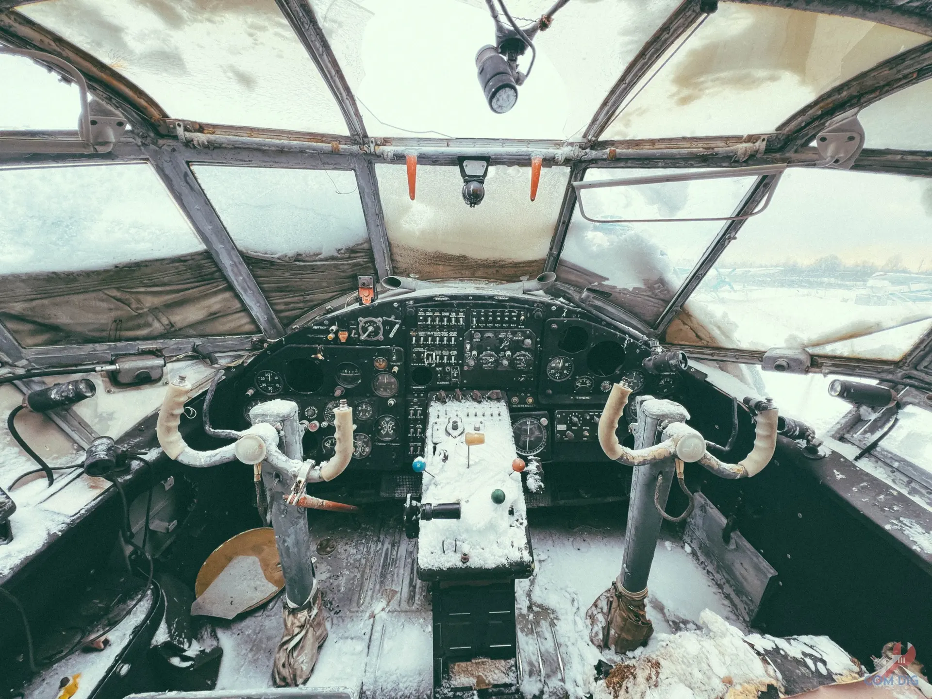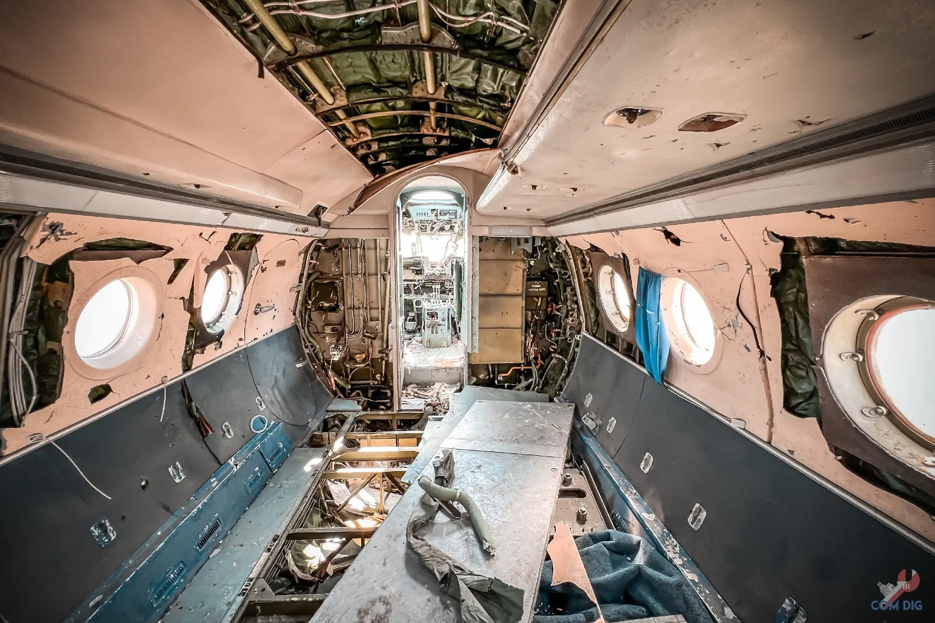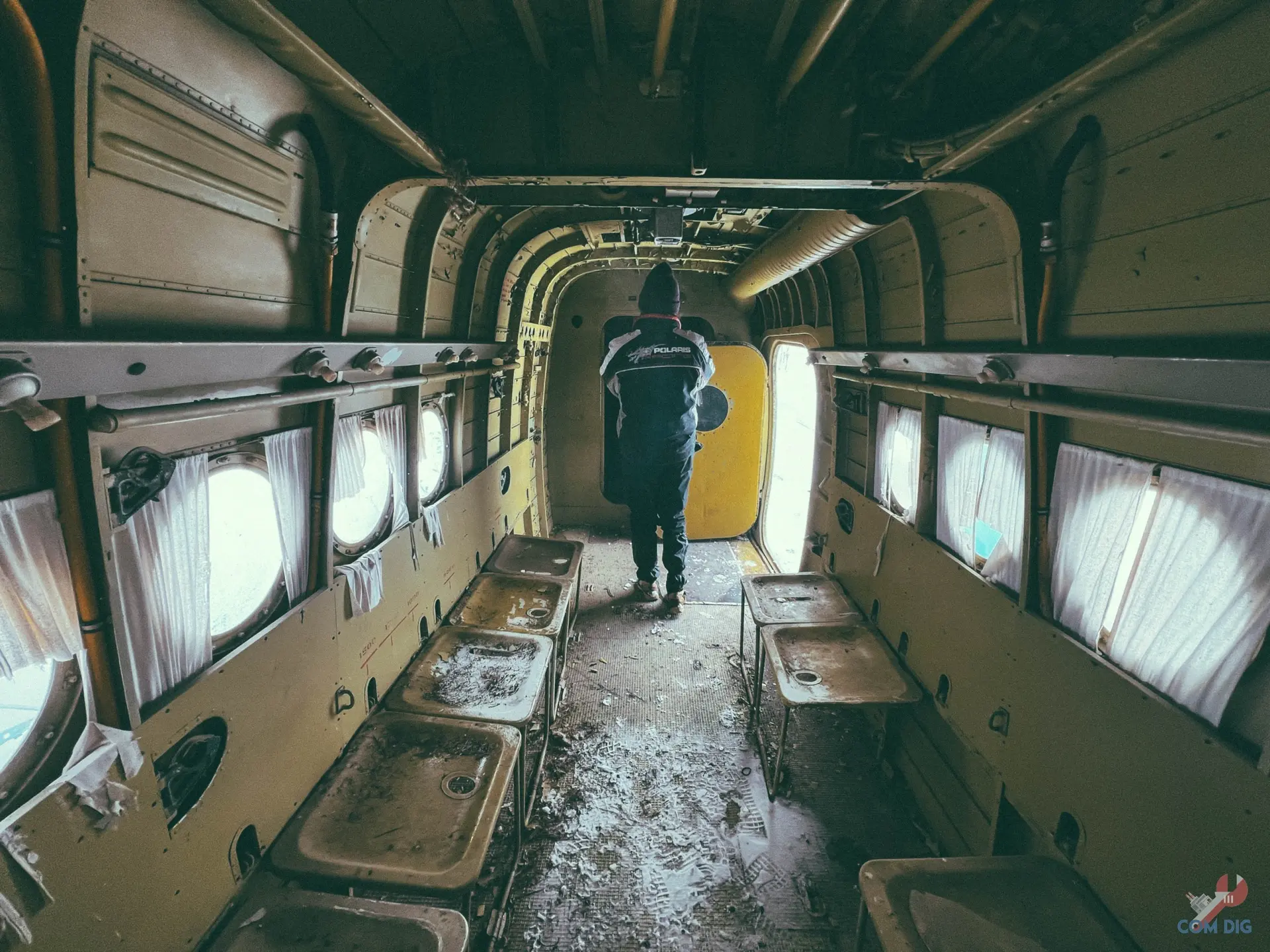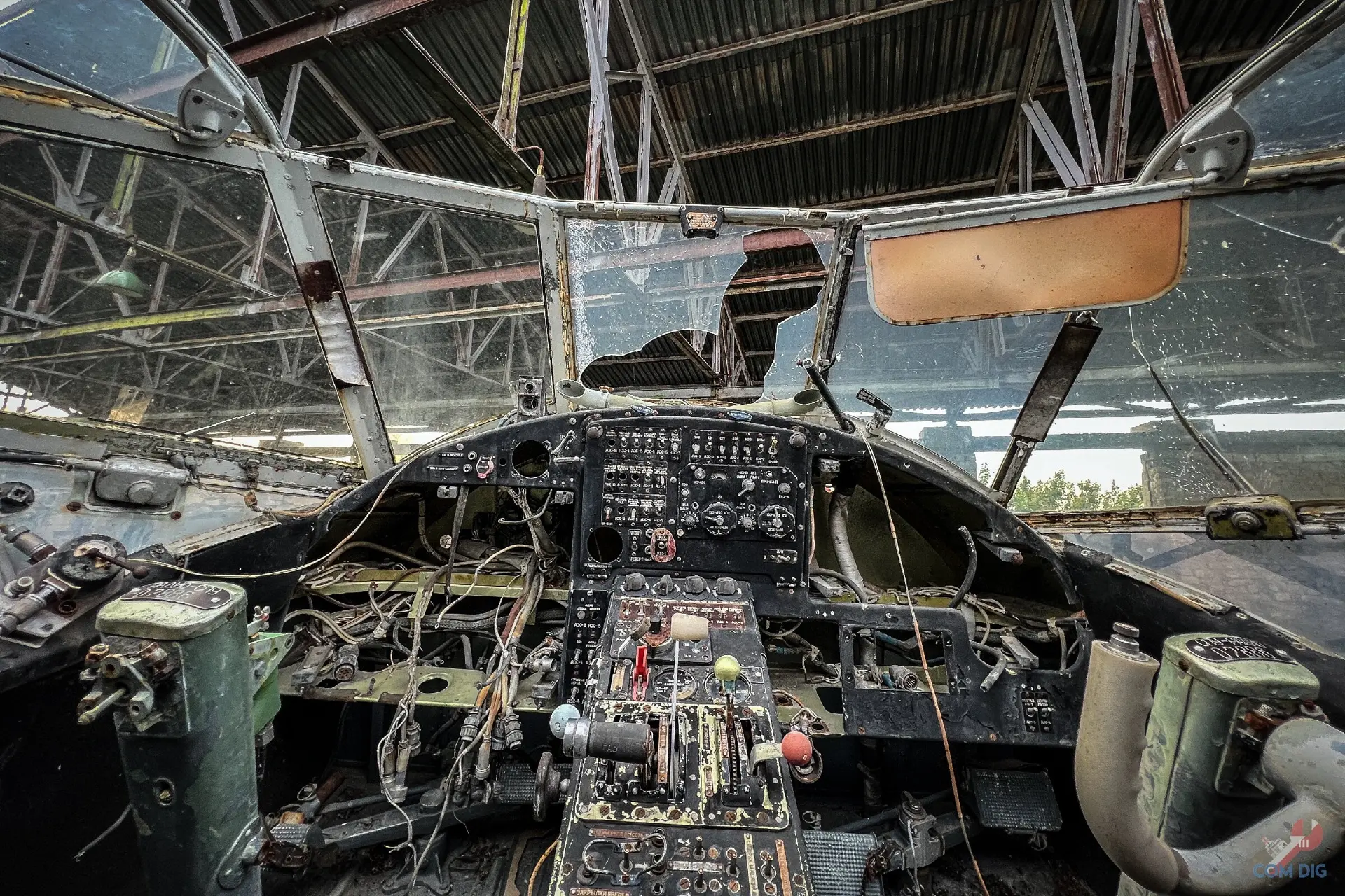 Внутри самолётов было ещё интереснее. Казалось, будто один из них потерпел крушение на тропическом острове, ведь через разбитые иллюминаторы пробивается растительность и всё затянуто зеленью.