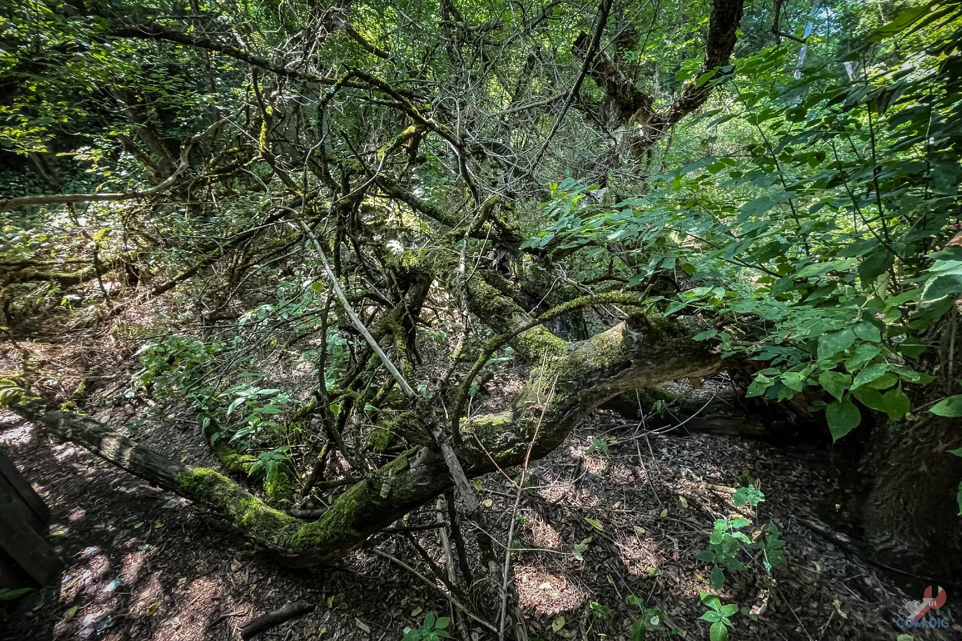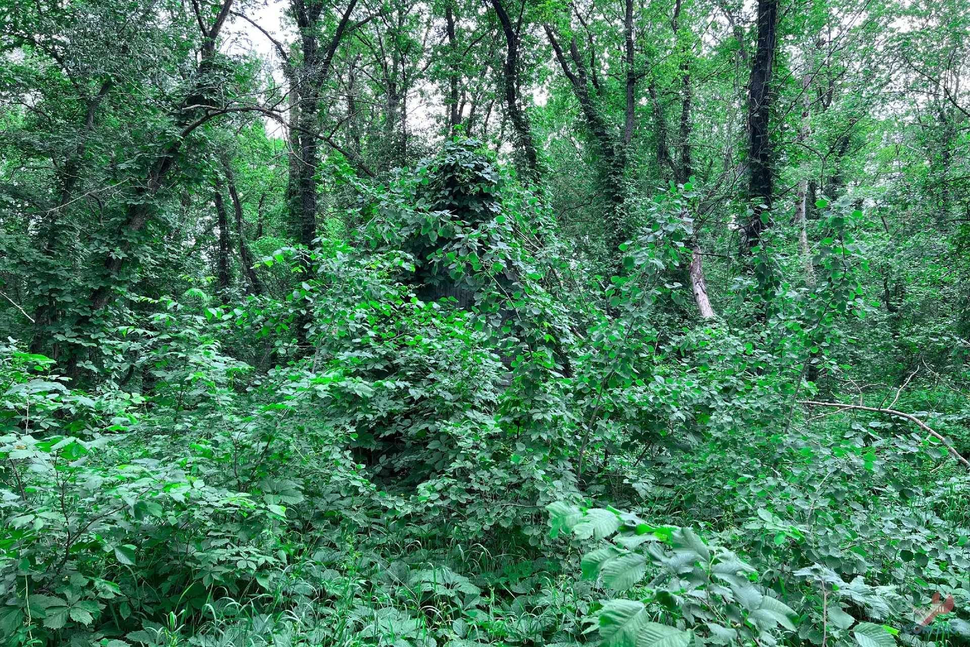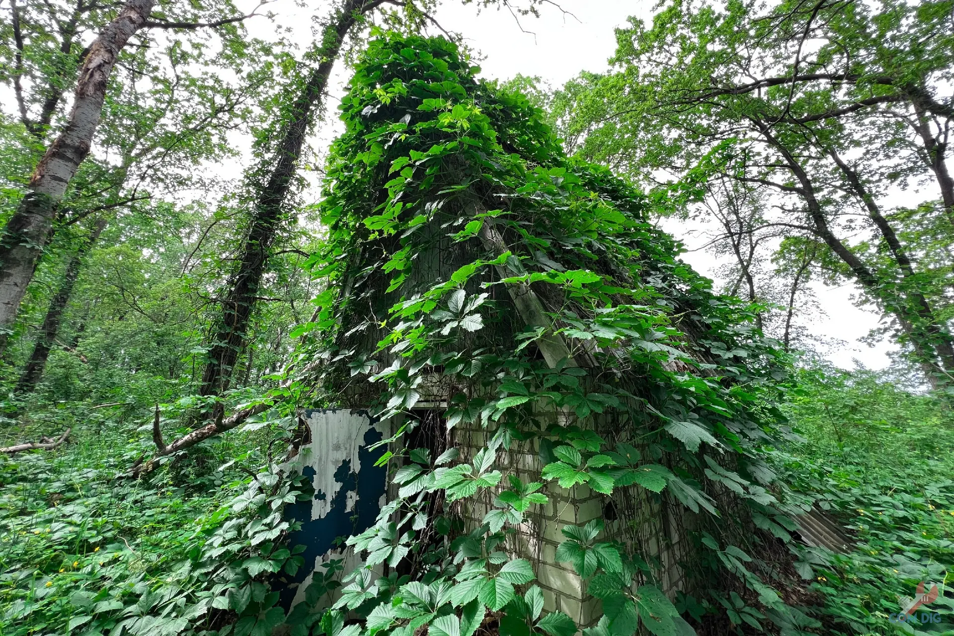 Лагерь зарос настолько, что почти не виден на спутниковых картах. А в реальности отыскать его в лесной чаще — задача ещё сложнее.