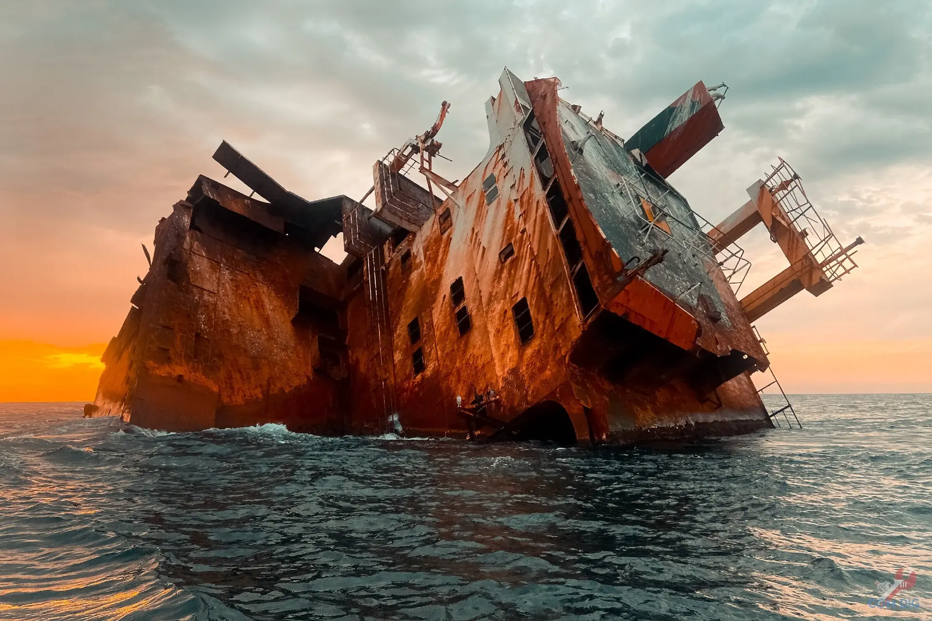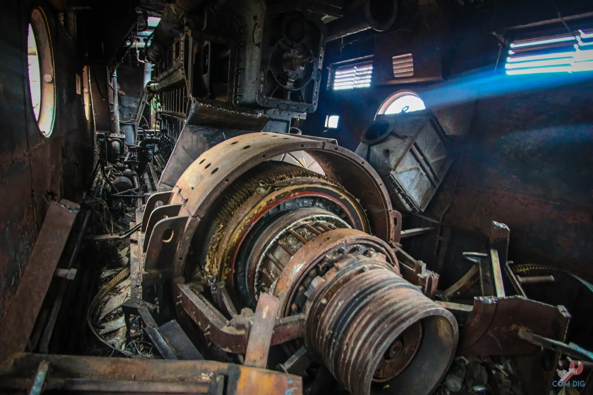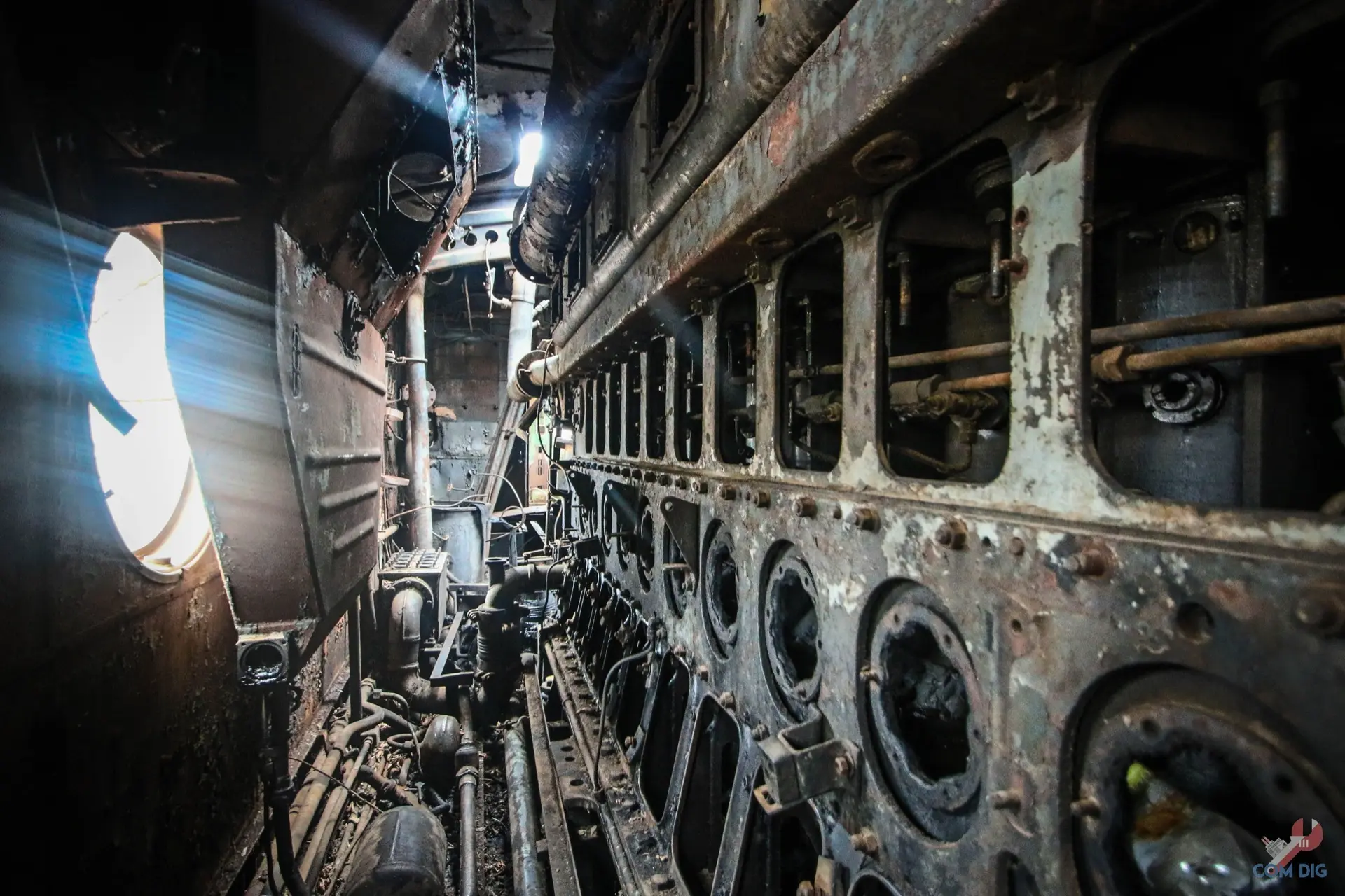 Как видно, всё пришло в полную негодность: металл проржавел насквозь и крошится, как печенье. Помещения пустые и жуткие, повсюду паутина, а в темноте слышно, как волны наполняют корпус судна.