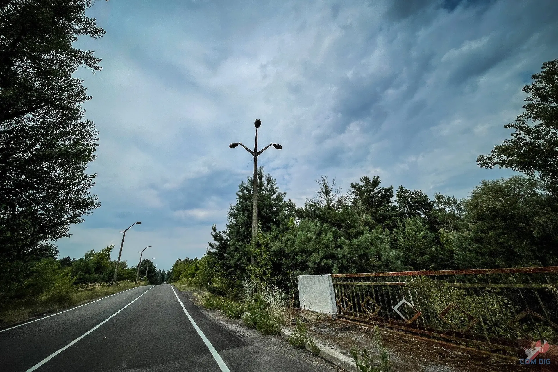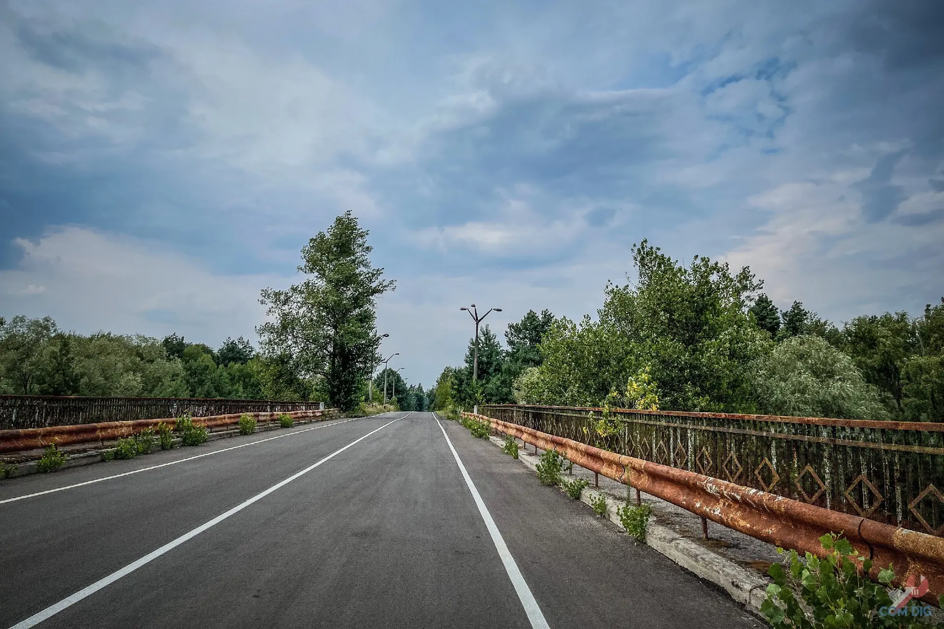 Впервые я увидел этот мост как обычный турист в Чернобыльской зоне. Останавливаться на нём запрещено, поэтому все кадры сделаны на ходу, даже окна в машине открывать было нельзя.