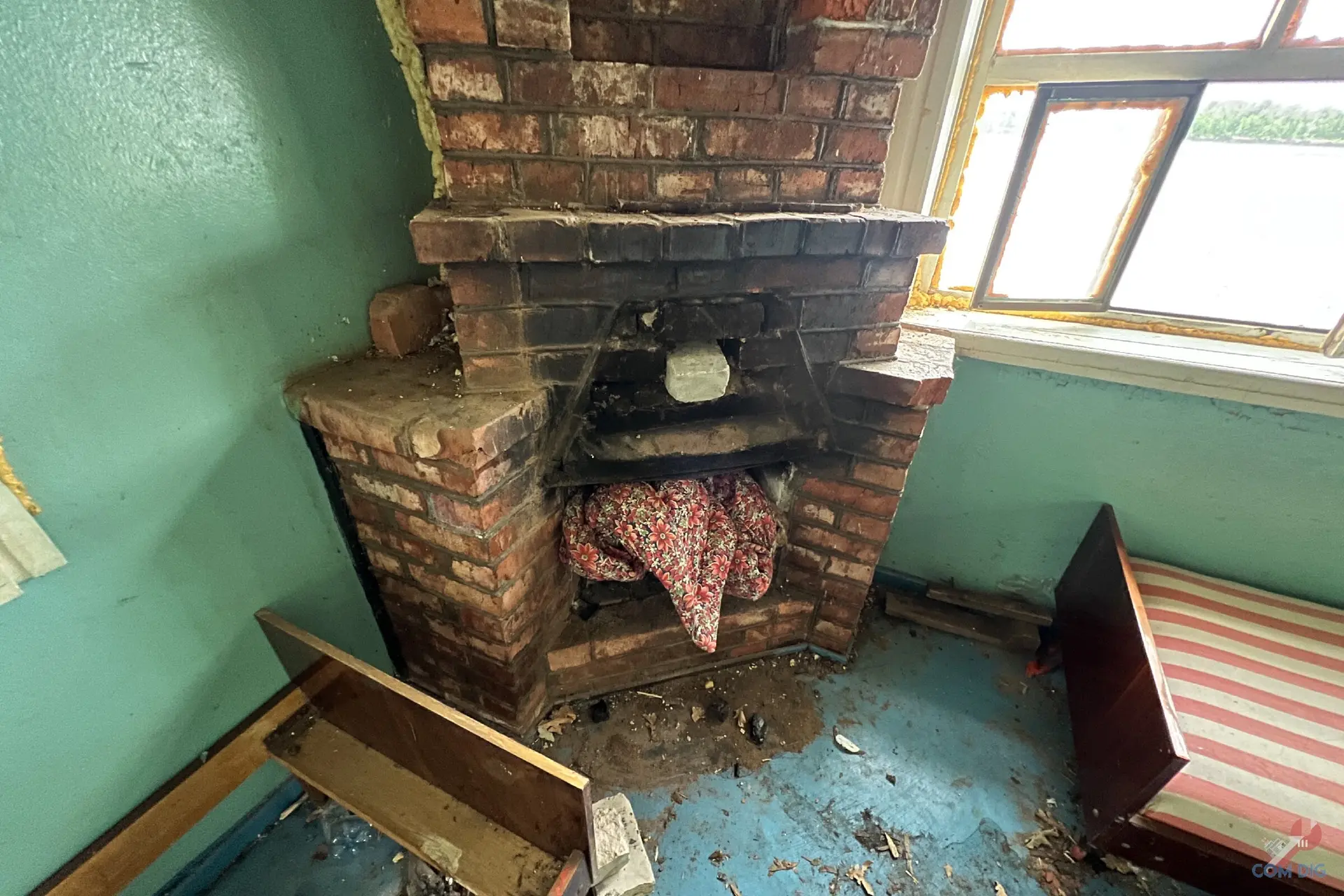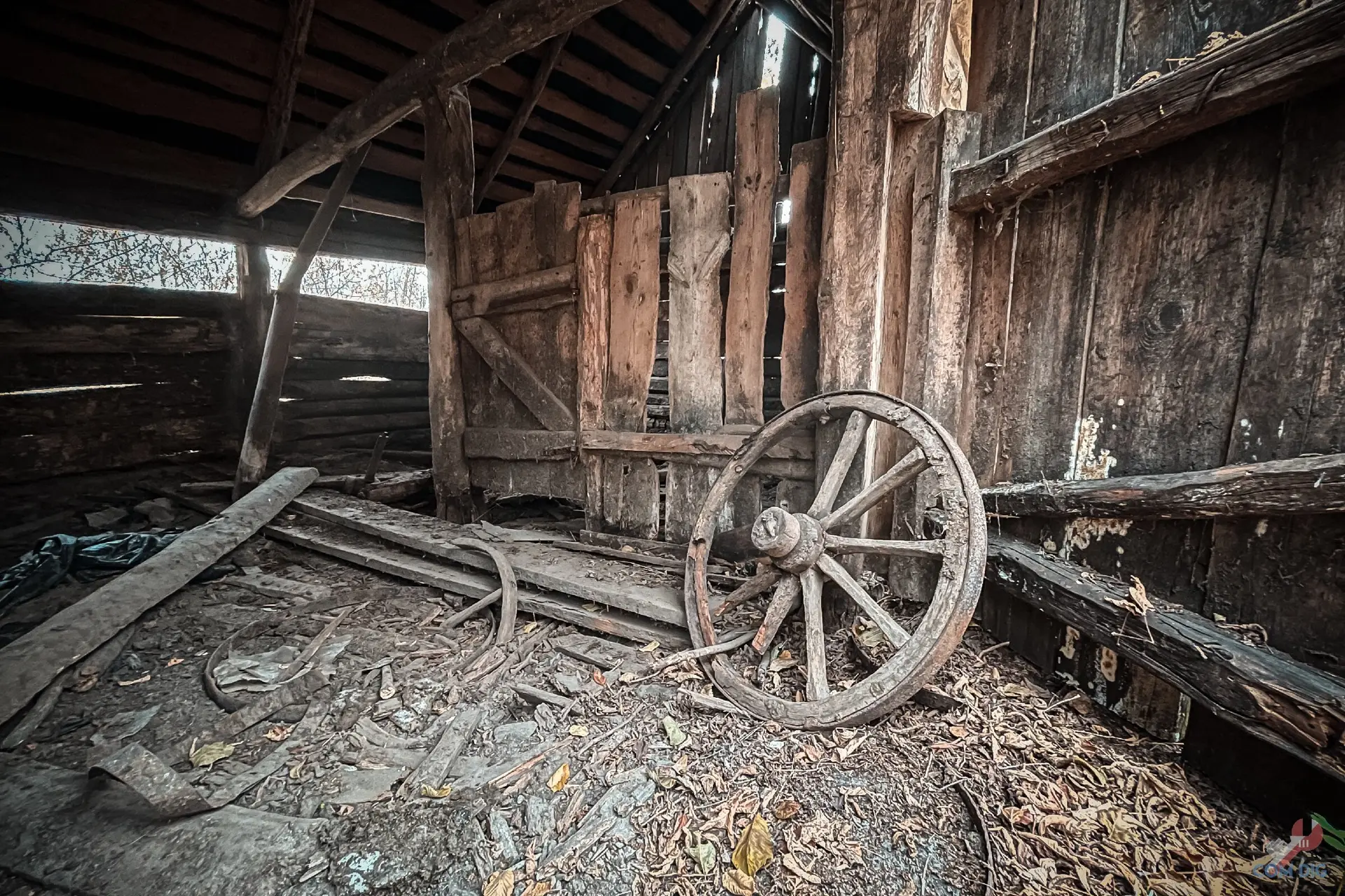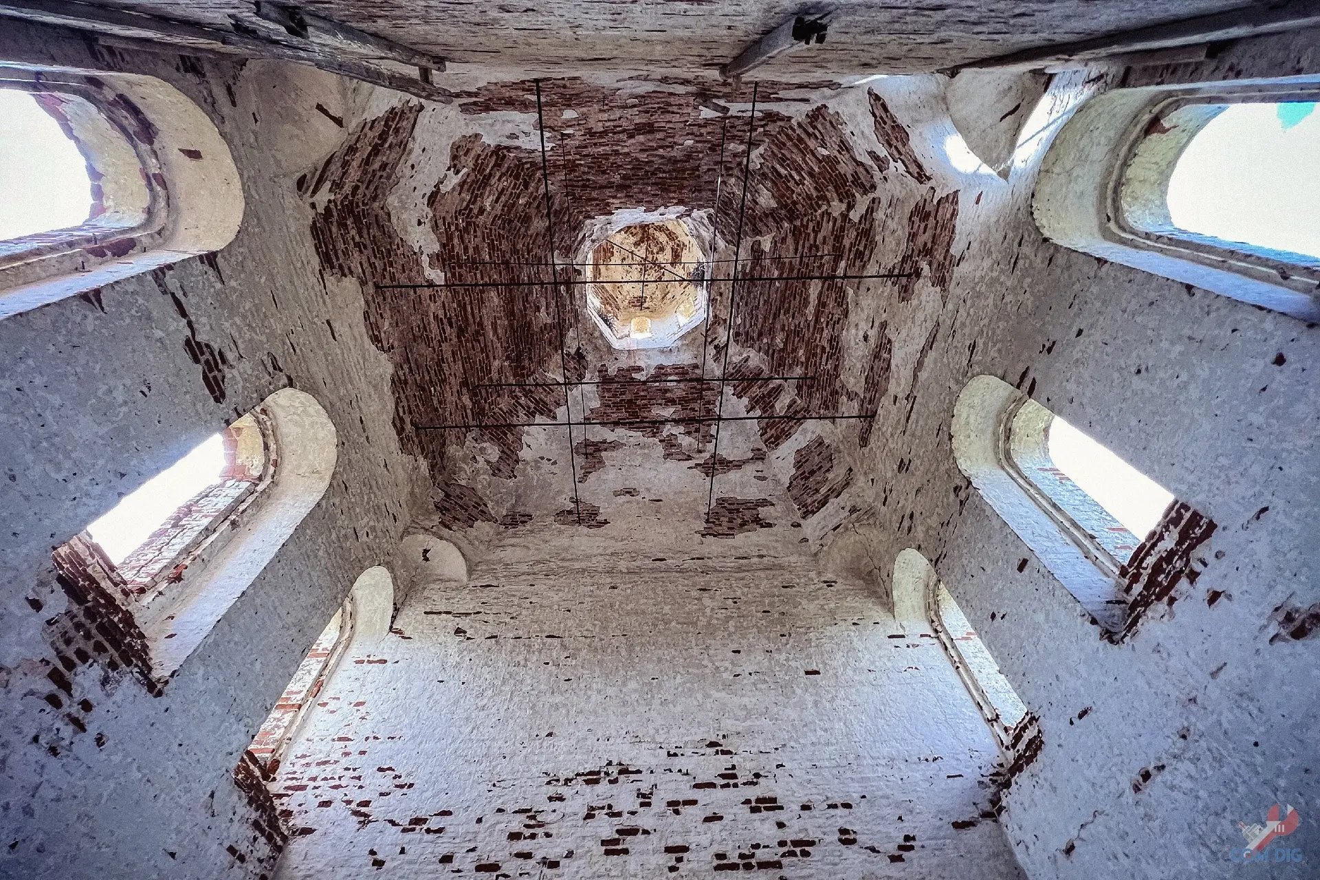 Внутри печальная картина. После того, как жители навсегда ушли из села, мародёры вынесли всё, что можно было унести. Остались только голые стены. Сюда вряд ли вернутся люди в ближайшие столетия.