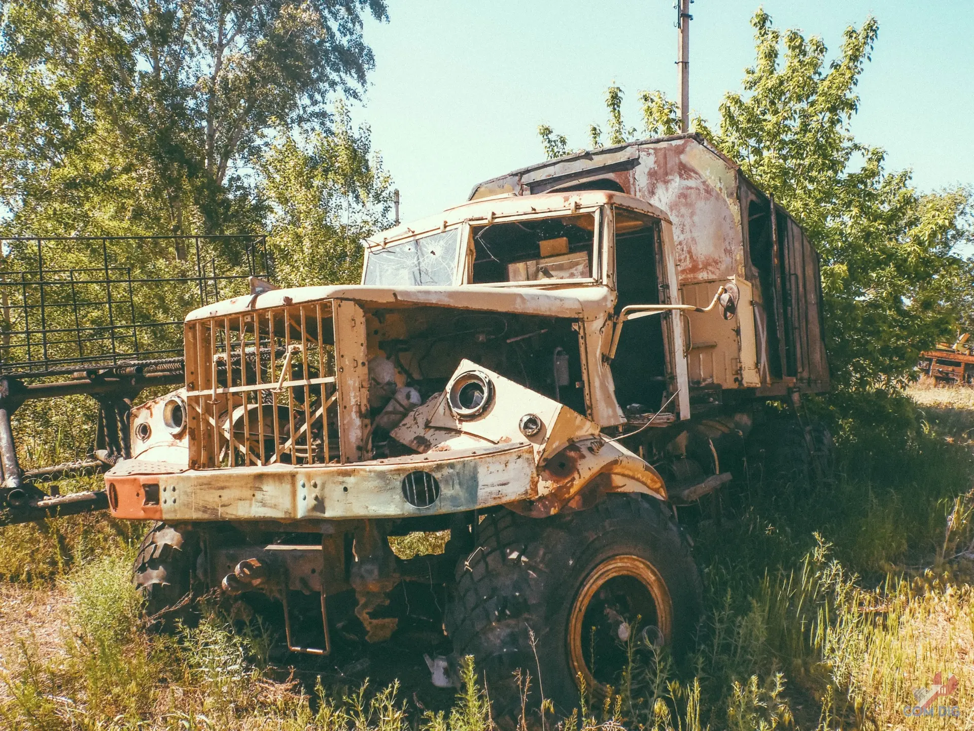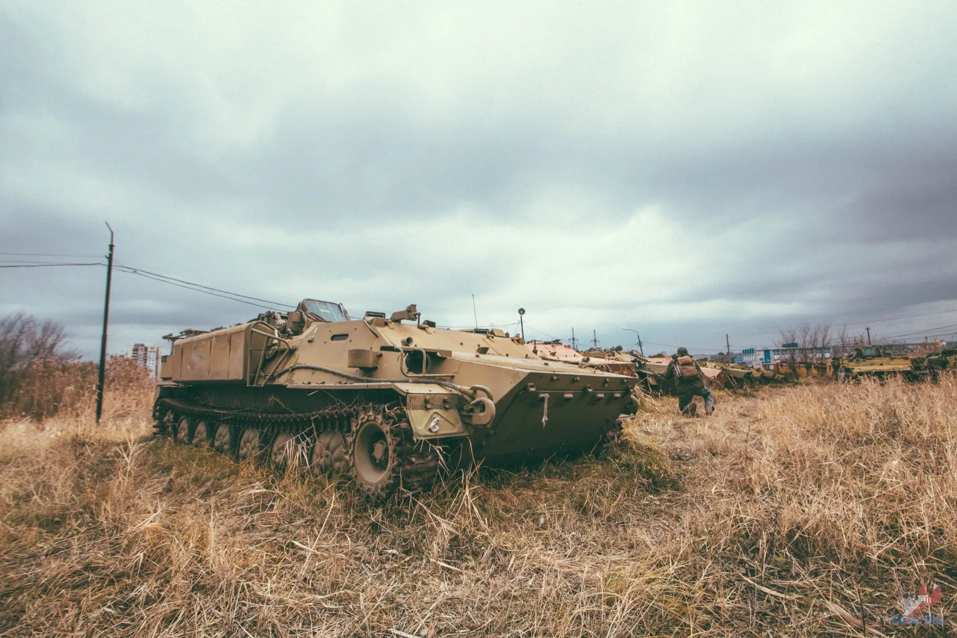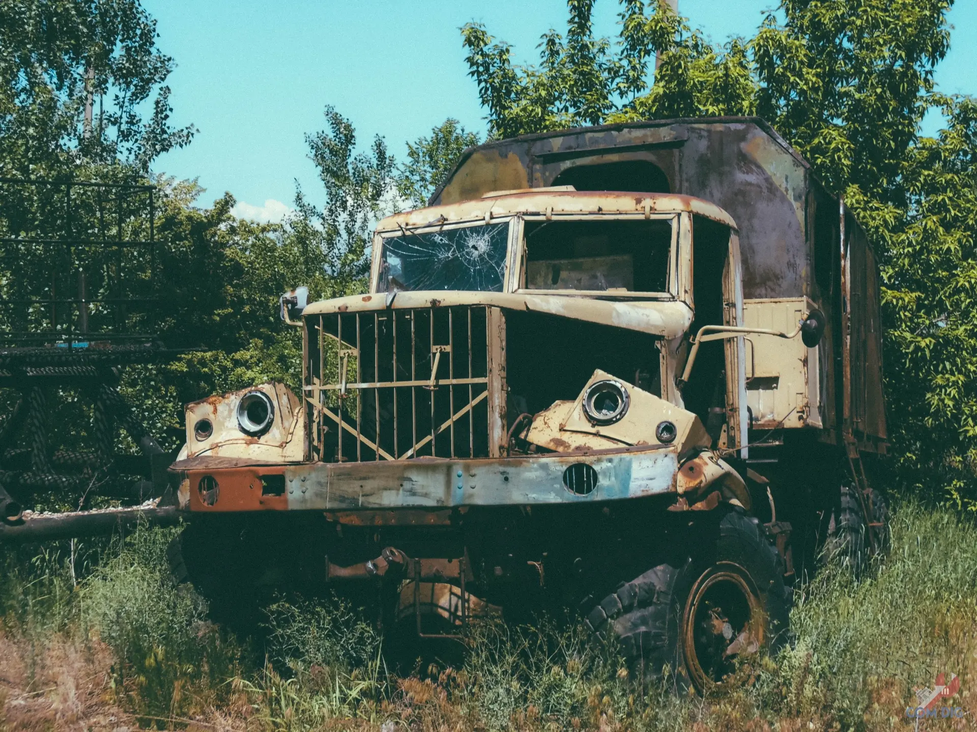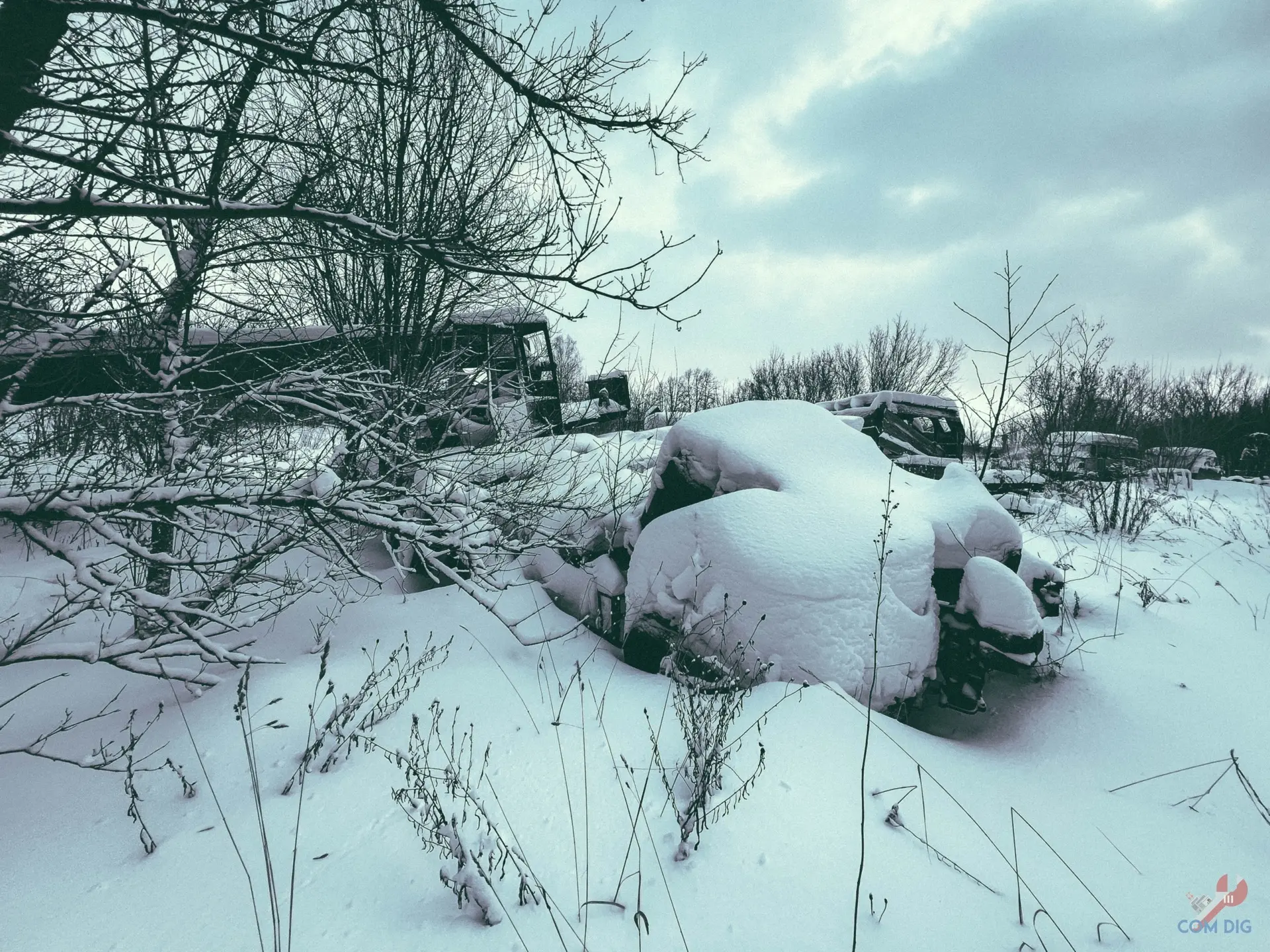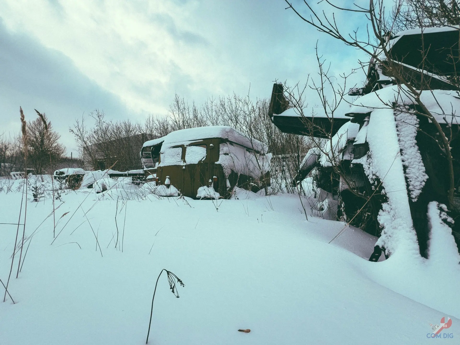 Недалеко от крупного отстойника радиоактивной техники «Буряковка» в Чернобыльской зоне есть небольшая поляна, затерянная в лесу. На ней разбросано множество единиц колёсной техники, от грузовиков до бронетранспортёров.