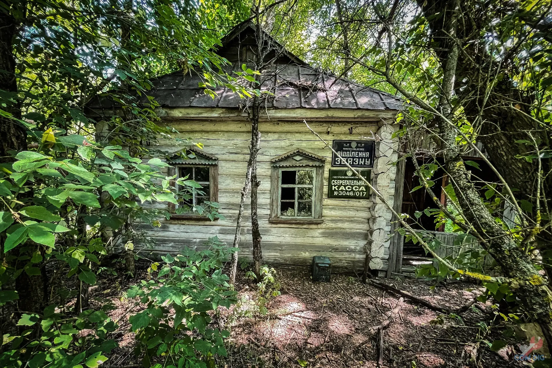 Но среди этого хаоса мы нашли дом, который сохранился невероятно хорошо, будто его бросили вчера. Оказалось, это бывшее почтовое отделение и сберкасса. Первое, что бросилось в глаза , это почти новые, не облезшие таблички на фасаде. Словно кто-то до сих пор ухаживает за этим местом.