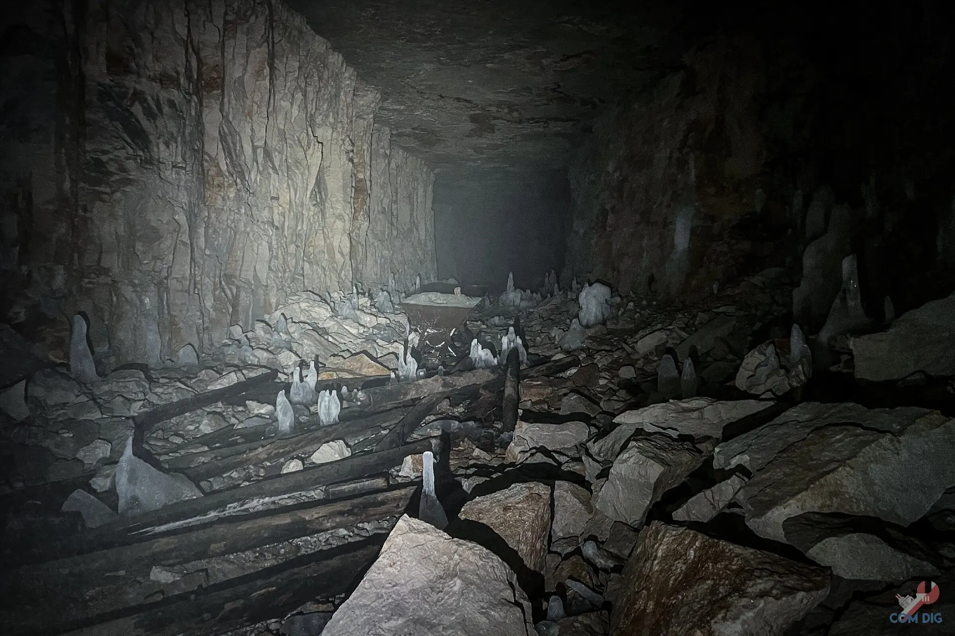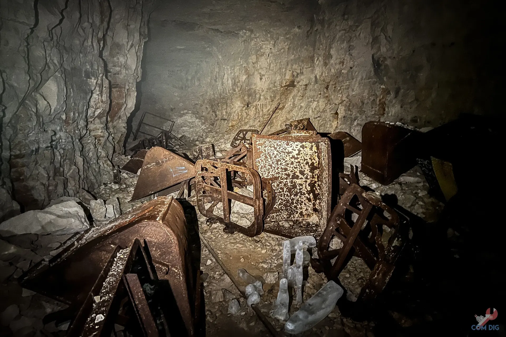 Раньше они вывозили взорванную породу. Грузили до 2 тонн каждая. И хотя они простояли без дела десятки лет в сырости, некоторые до сих пор в отличном состоянии и, кажется, готовы снова работать.