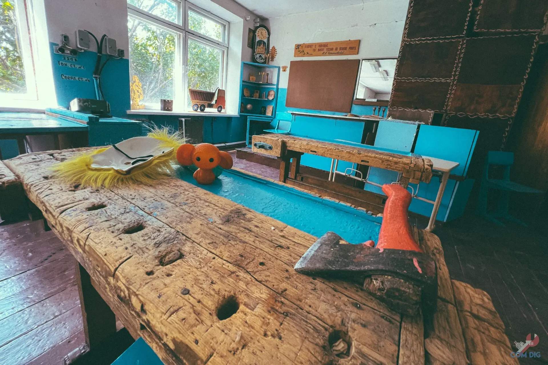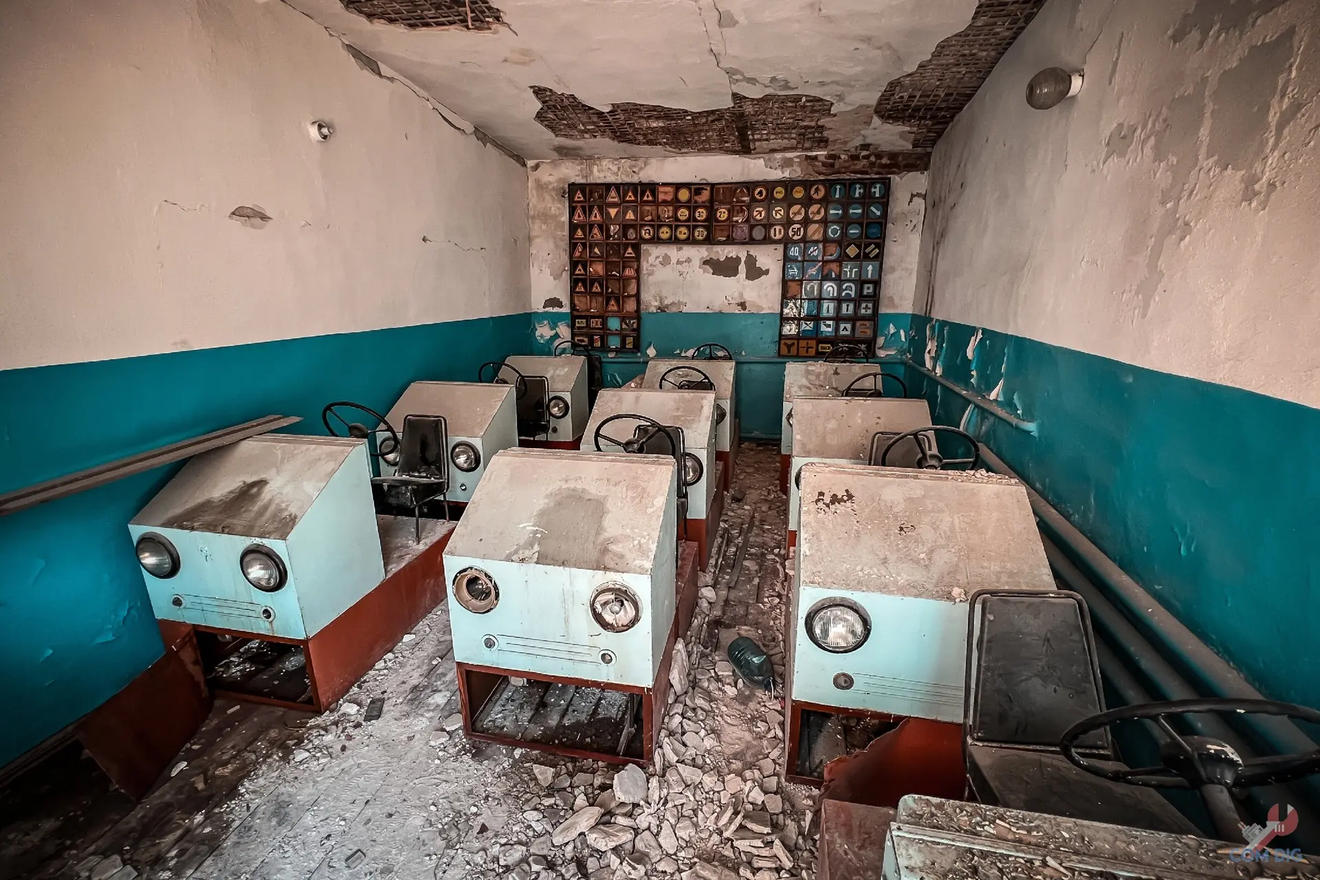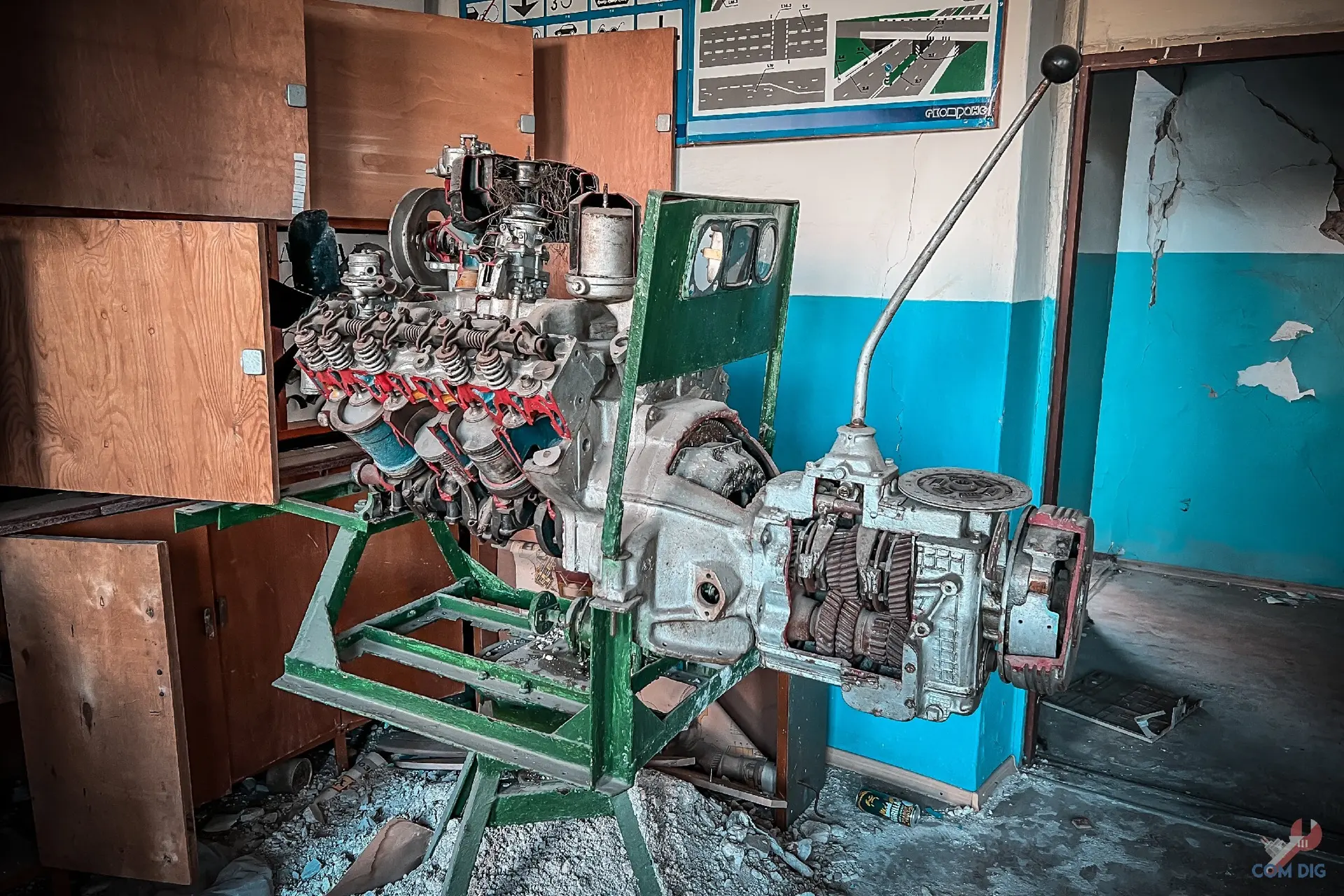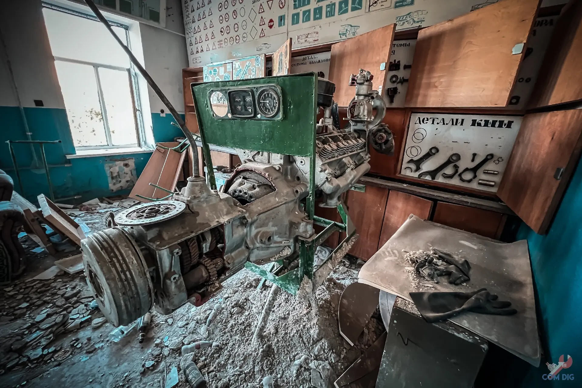Побывали в бывшей Мариупольской автошколе ДОСААФ. Это было настоящее путешествие «назад в СССР». Мы были поражены, насколько внутри всё сохранило дух советской эпохи. В каждом кабинете старый ремонт, учебные плакаты с ПДД тех лет, макеты двигателей. Всё выглядит хоть и поношенным, но очень уютным и аутентичным.