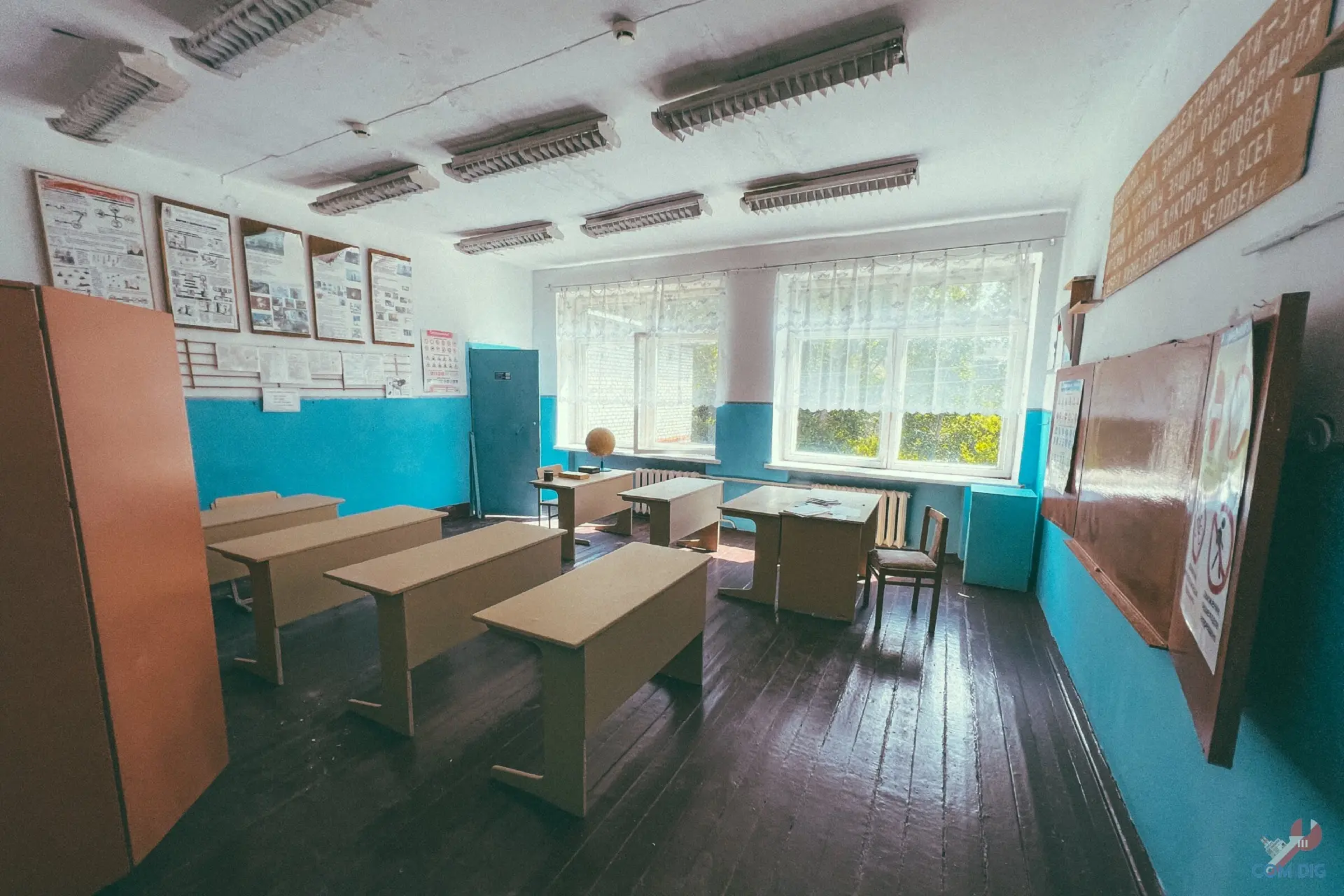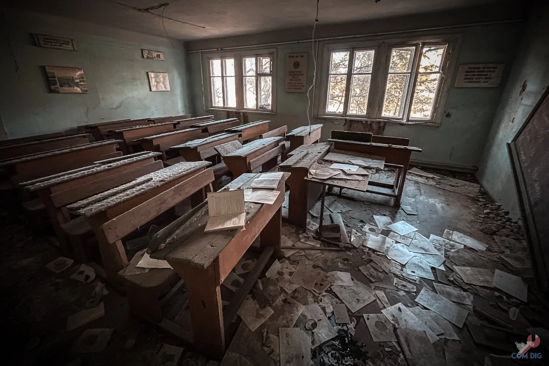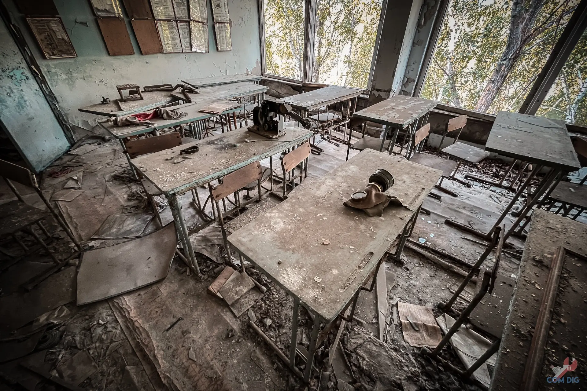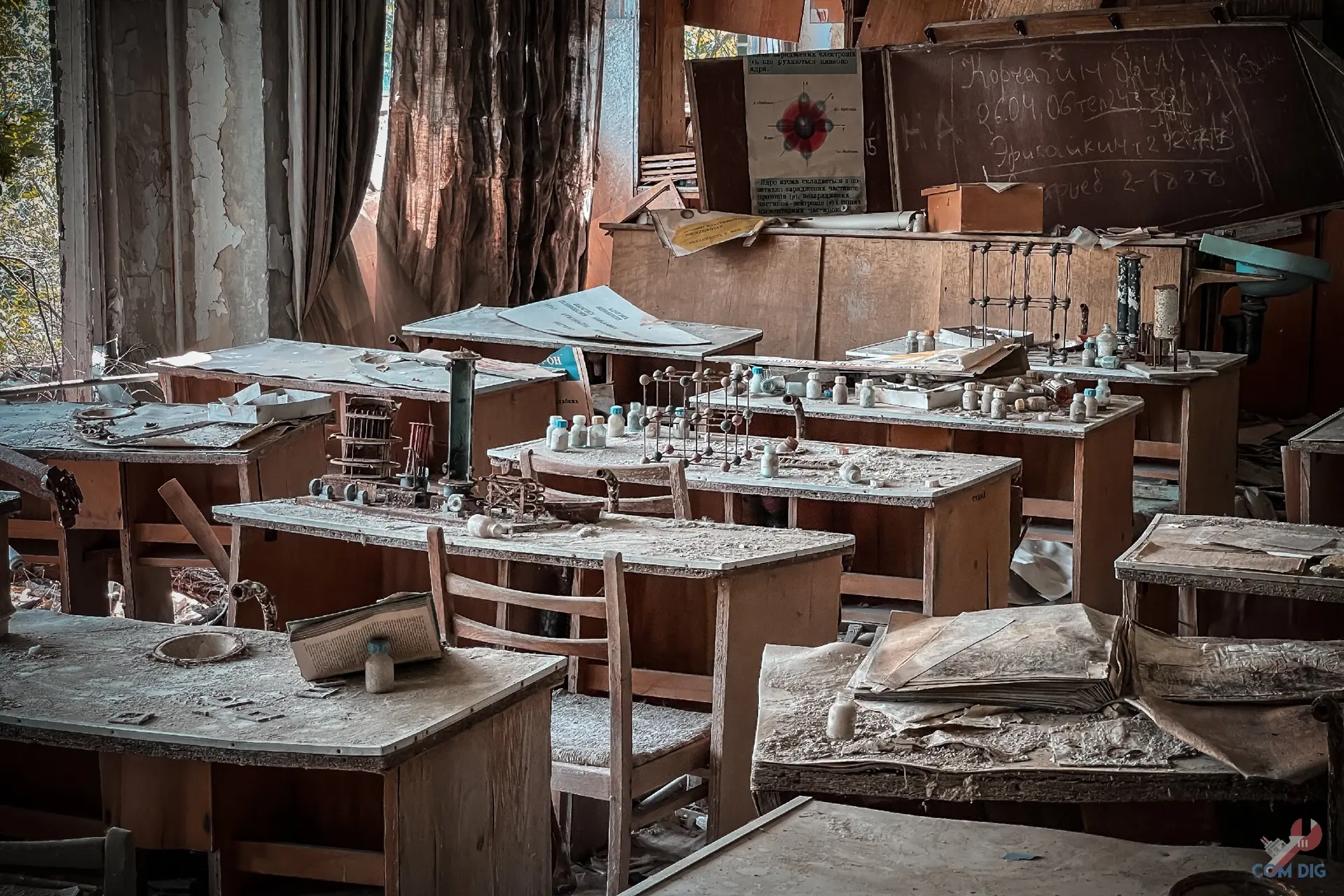 Не зря школу №2 в Припяти называют самой сохранившейся. В её классах время остановилось весной 1986 года, с момента аварии на ЧАЭС. Перед тем как уйти, ученики, по словам учителей, перевернули стулья на парты. Никто даже не думал, что уходит навсегда и больше никогда не сядет за свою парту.