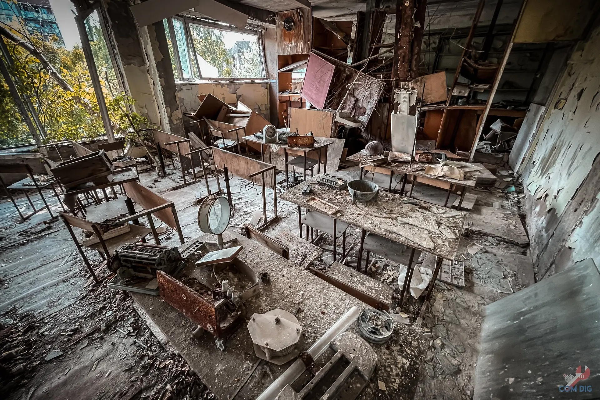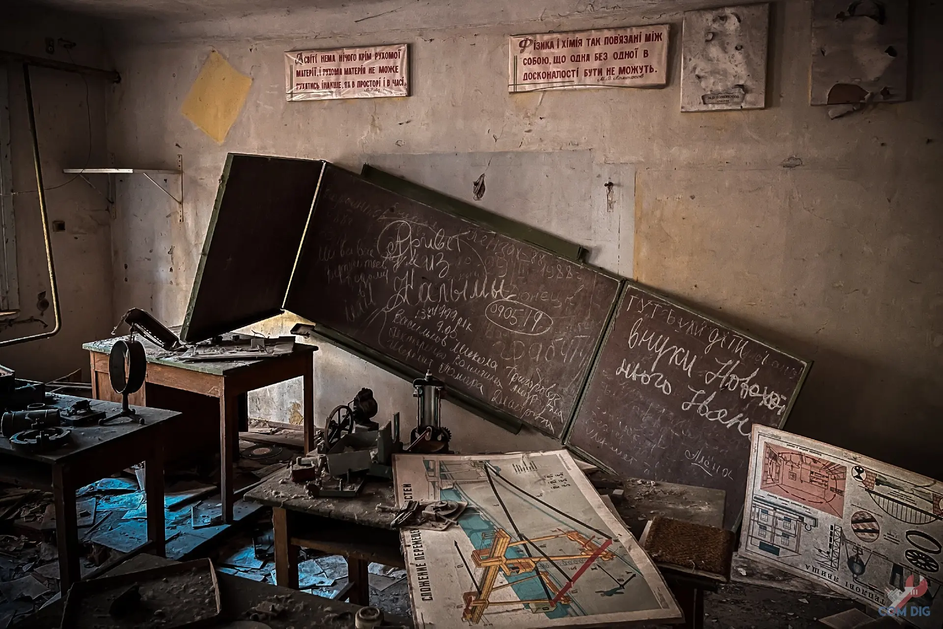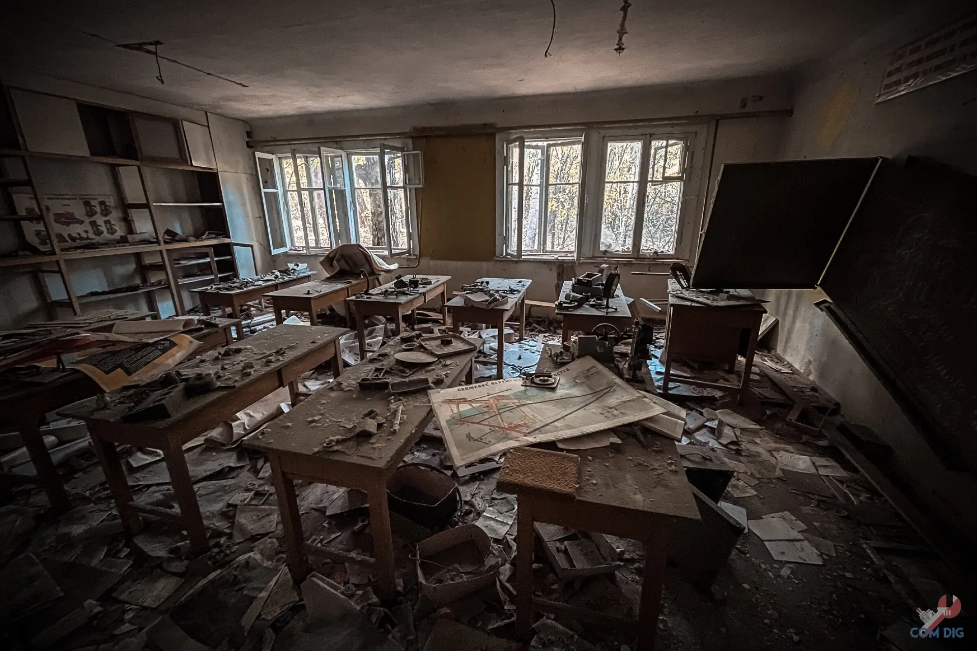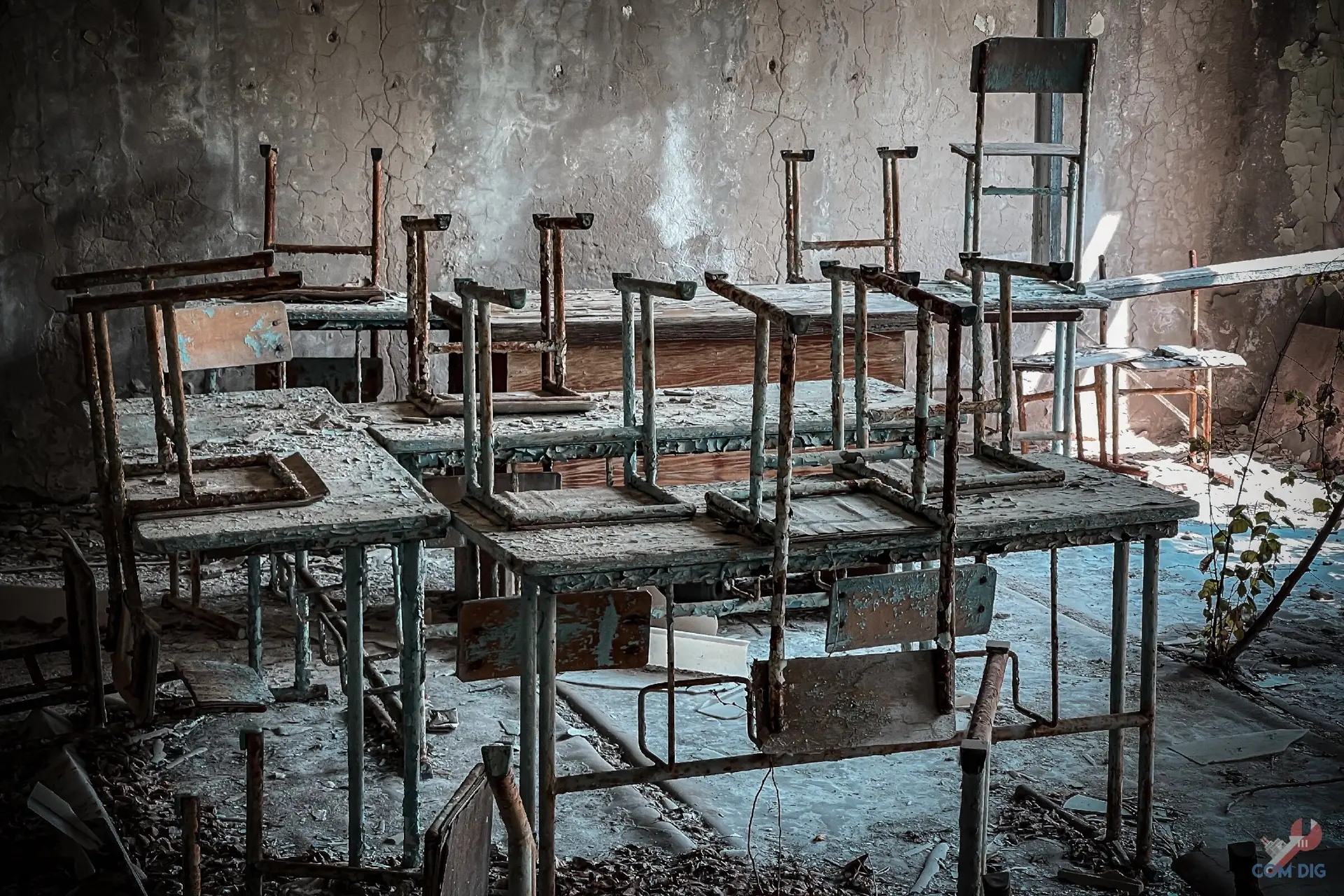 Не зря школу №2 в Припяти называют самой сохранившейся. В её классах время остановилось весной 1986 года, с момента аварии на ЧАЭС. Перед тем как уйти, ученики, по словам учителей, перевернули стулья на парты. Никто даже не думал, что уходит навсегда и больше никогда не сядет за свою парту.