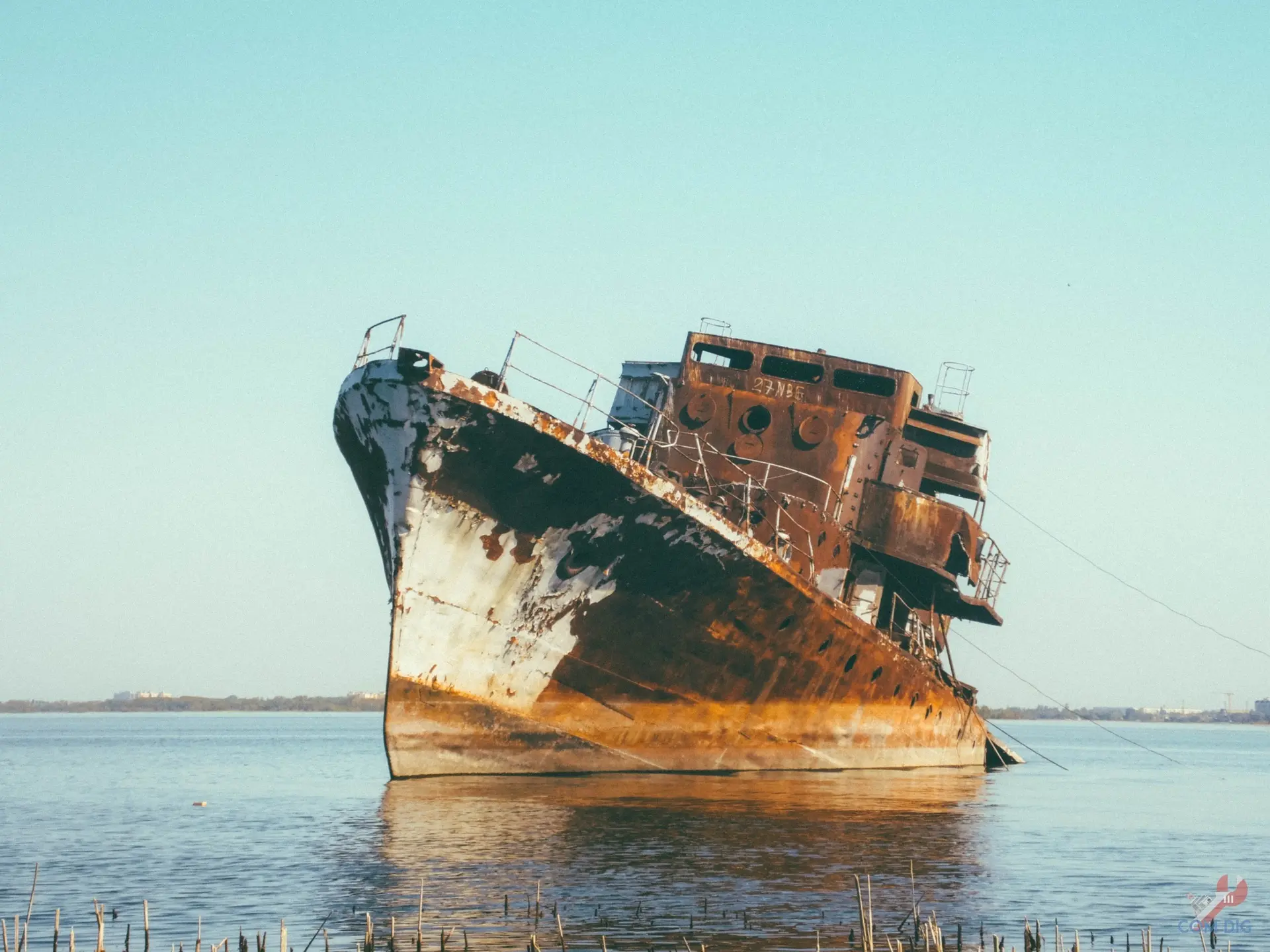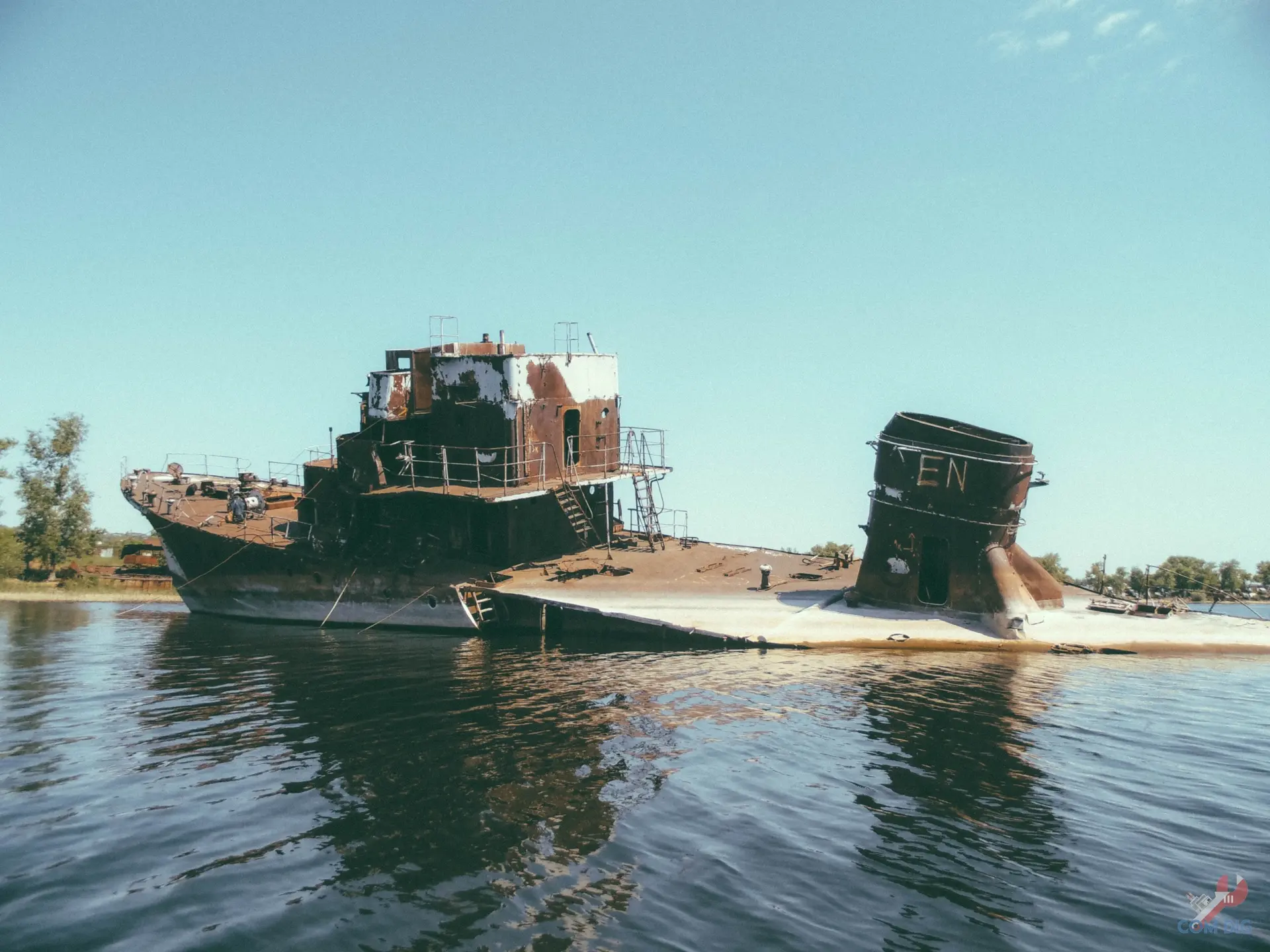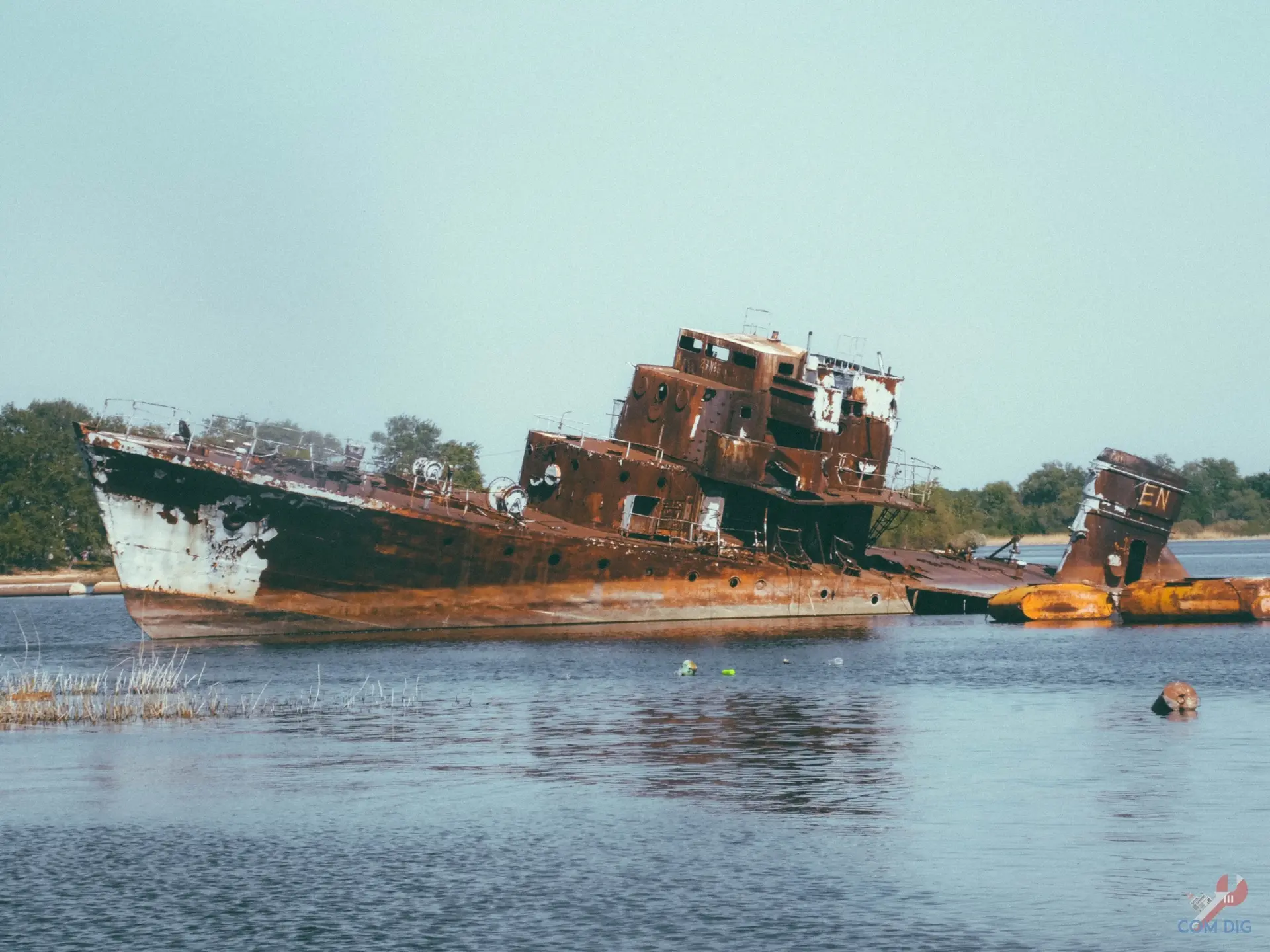 Перед своим исчезновением тральщик сильно накренился на левый борт, корма полностью ушла под воду. Он был привязан к берегу тремя тросами, а перед ним на суше стояла его же рубка. Теперь эти кадры — уже история. Корабля на старом месте давно нет.
