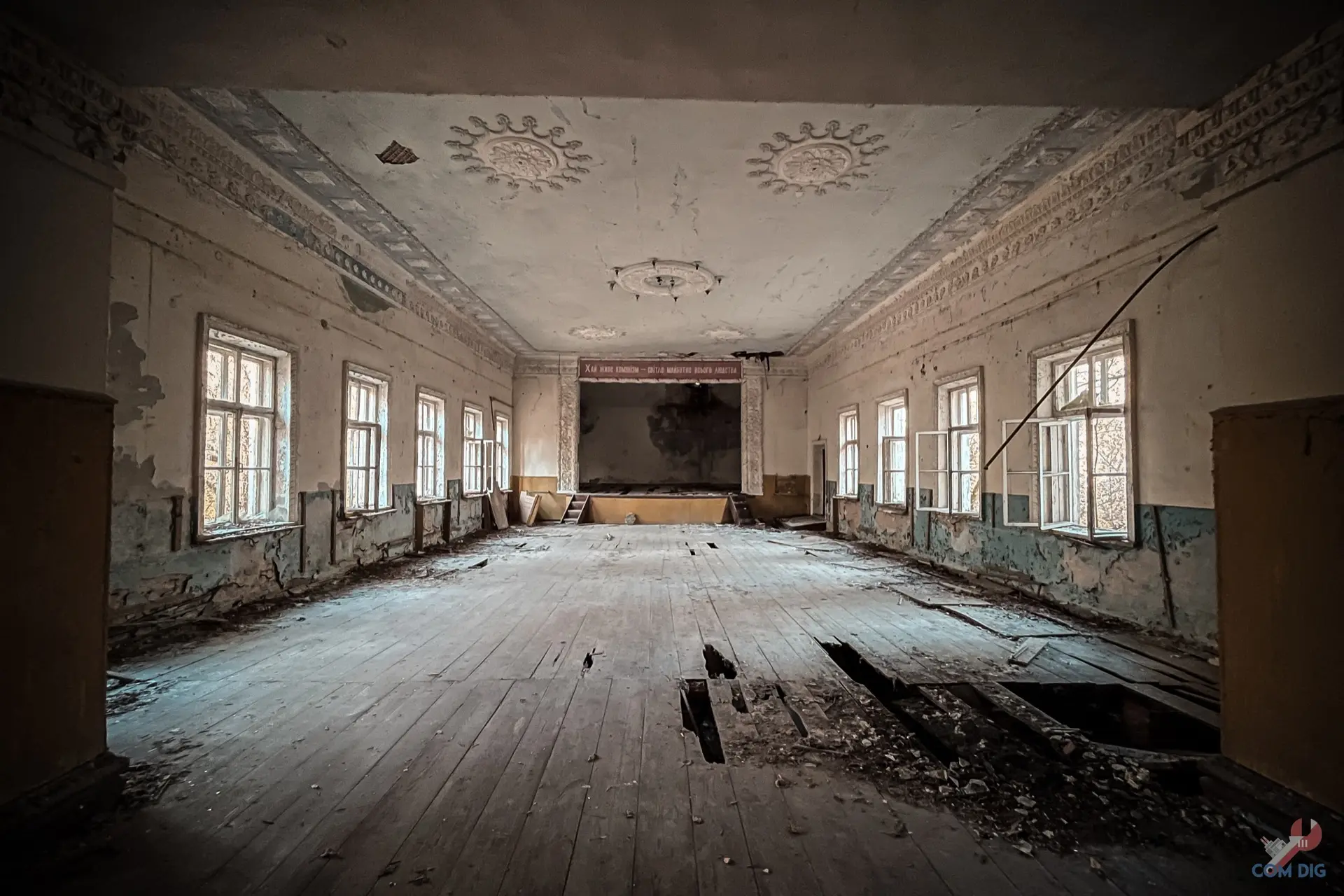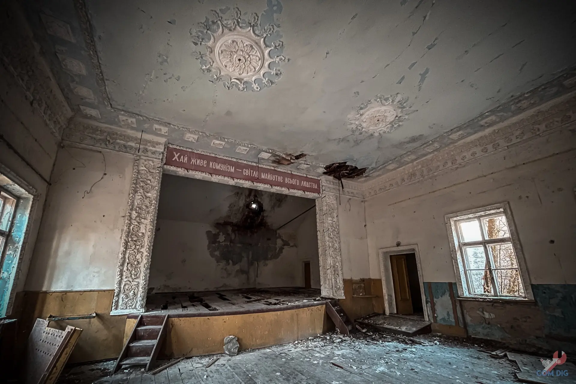 Когда-то величественное здание в стиле сталинского ампира, с колоннами и лепниной, гордость всего села. Здесь звучала музыка, проводились торжества, собирались сельчане. Теперь его стены пусты и никогда больше не увидят праздников.