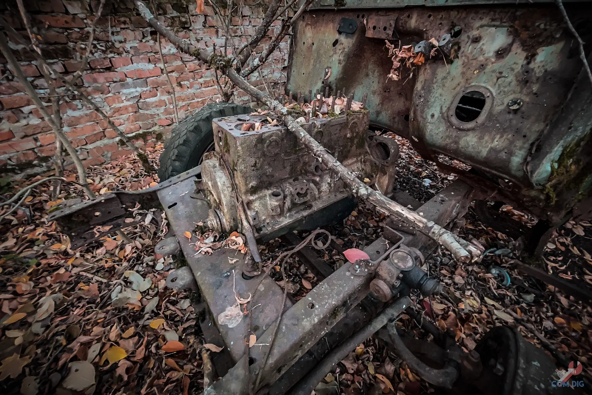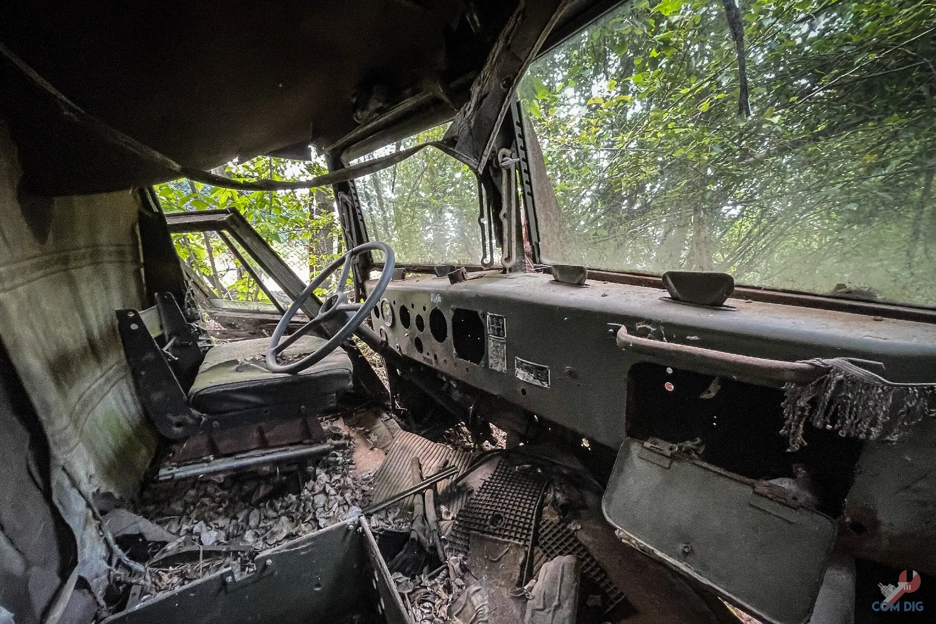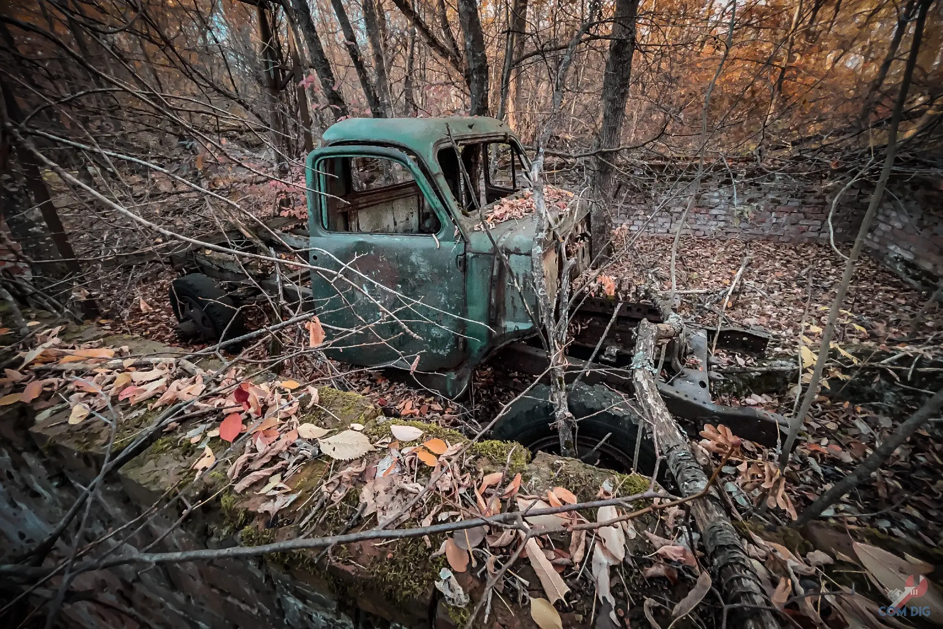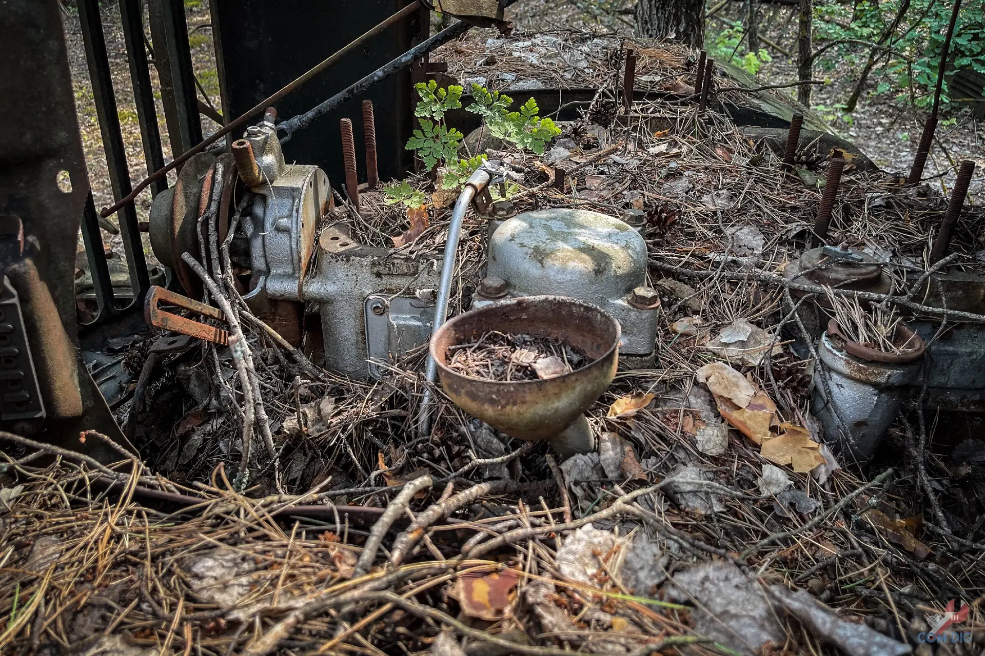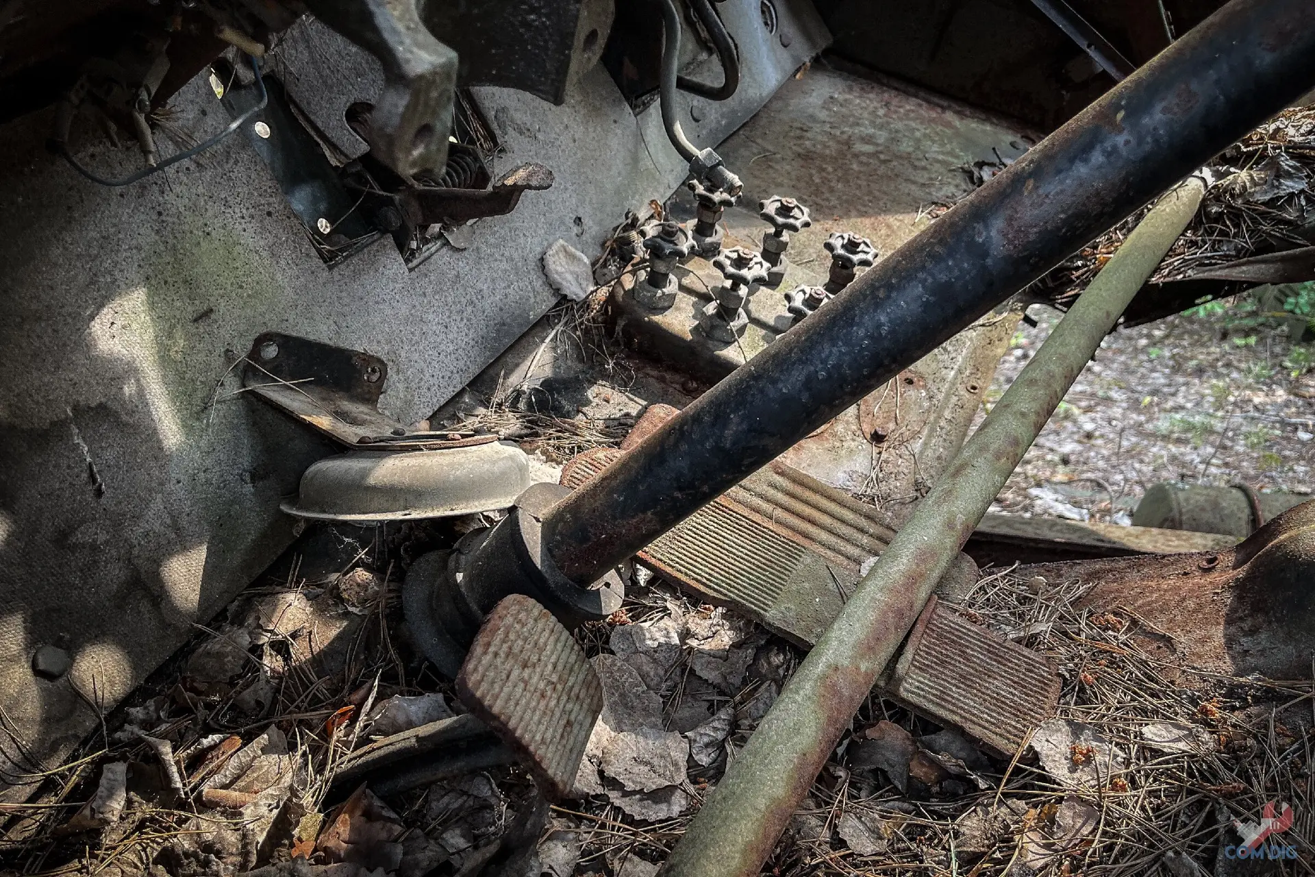 Возникает вопрос: что она делает здесь, в полуразграбленном состоянии, а не на территории отстойника? Ответ прост — мародёрство. Эту технику либо не довезли до отстойника «Буряковки», либо, наоборот, специально оттащили из отстойника подальше в лес, чтобы спокойно разбирать на запчасти. В конце 80-х детали для грузовиков, автобусов и бульдозеров были на вес золота.
