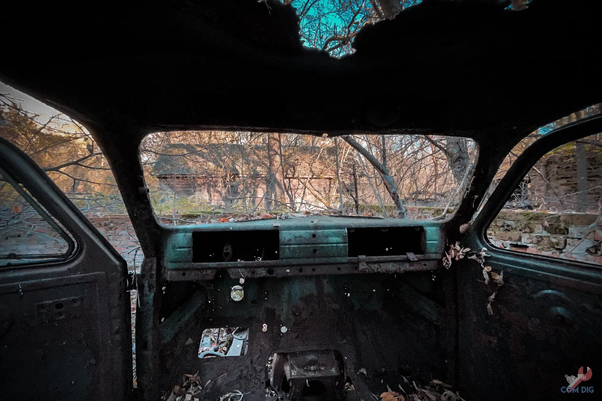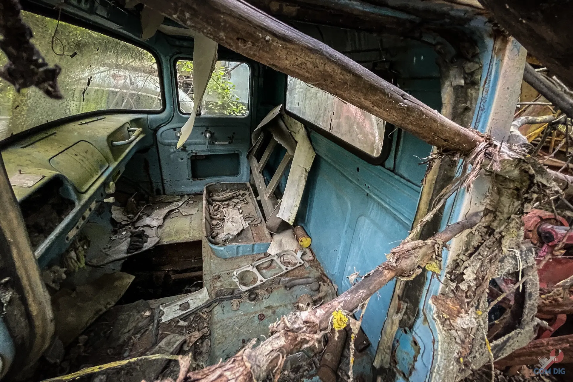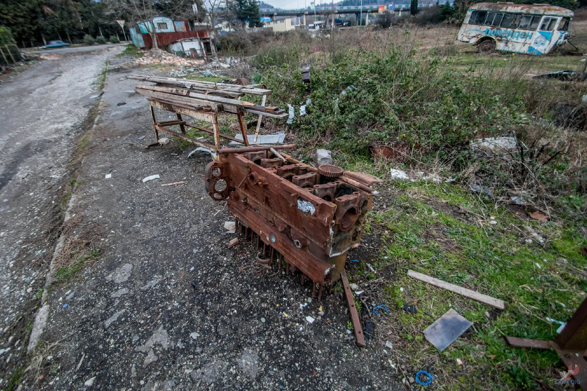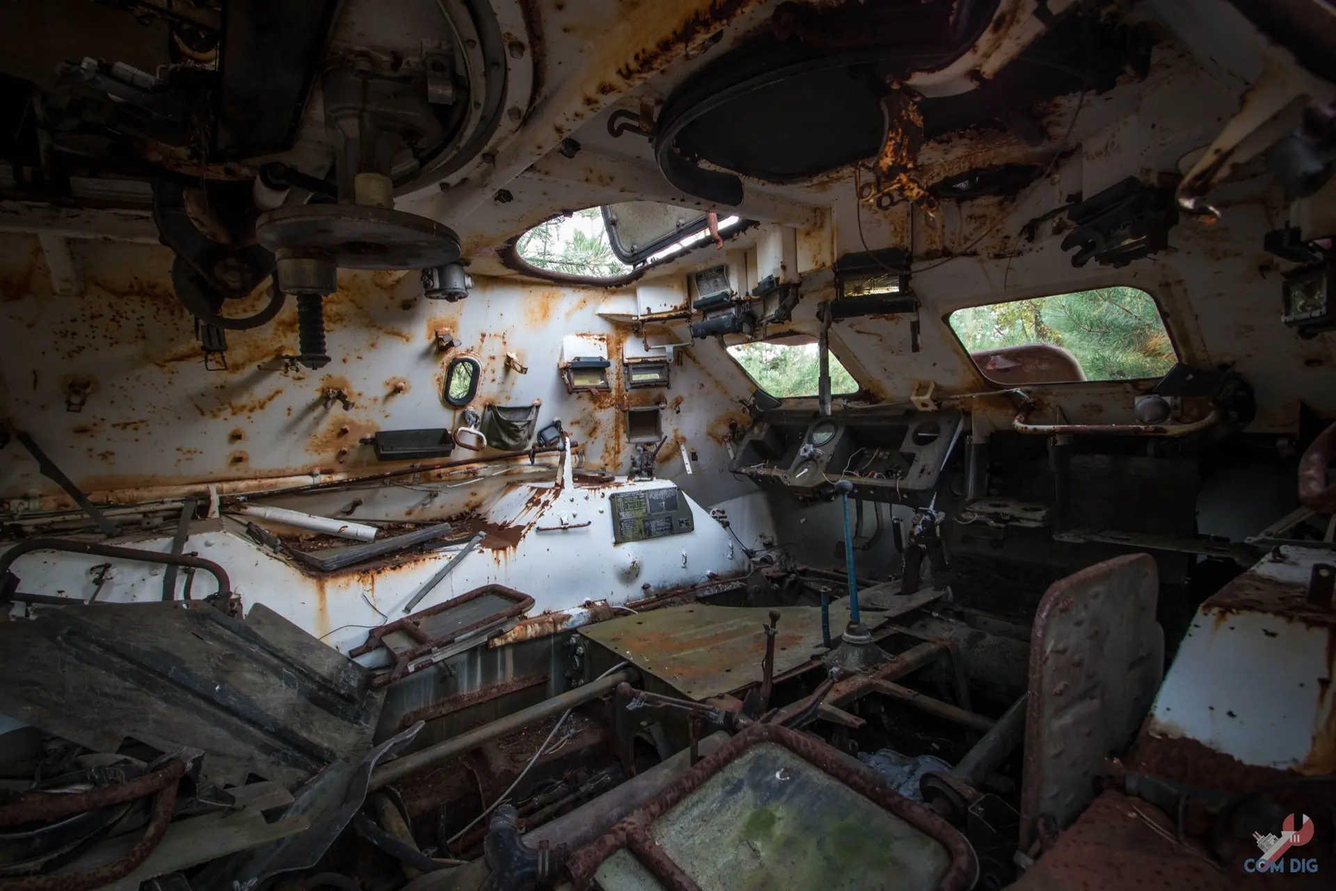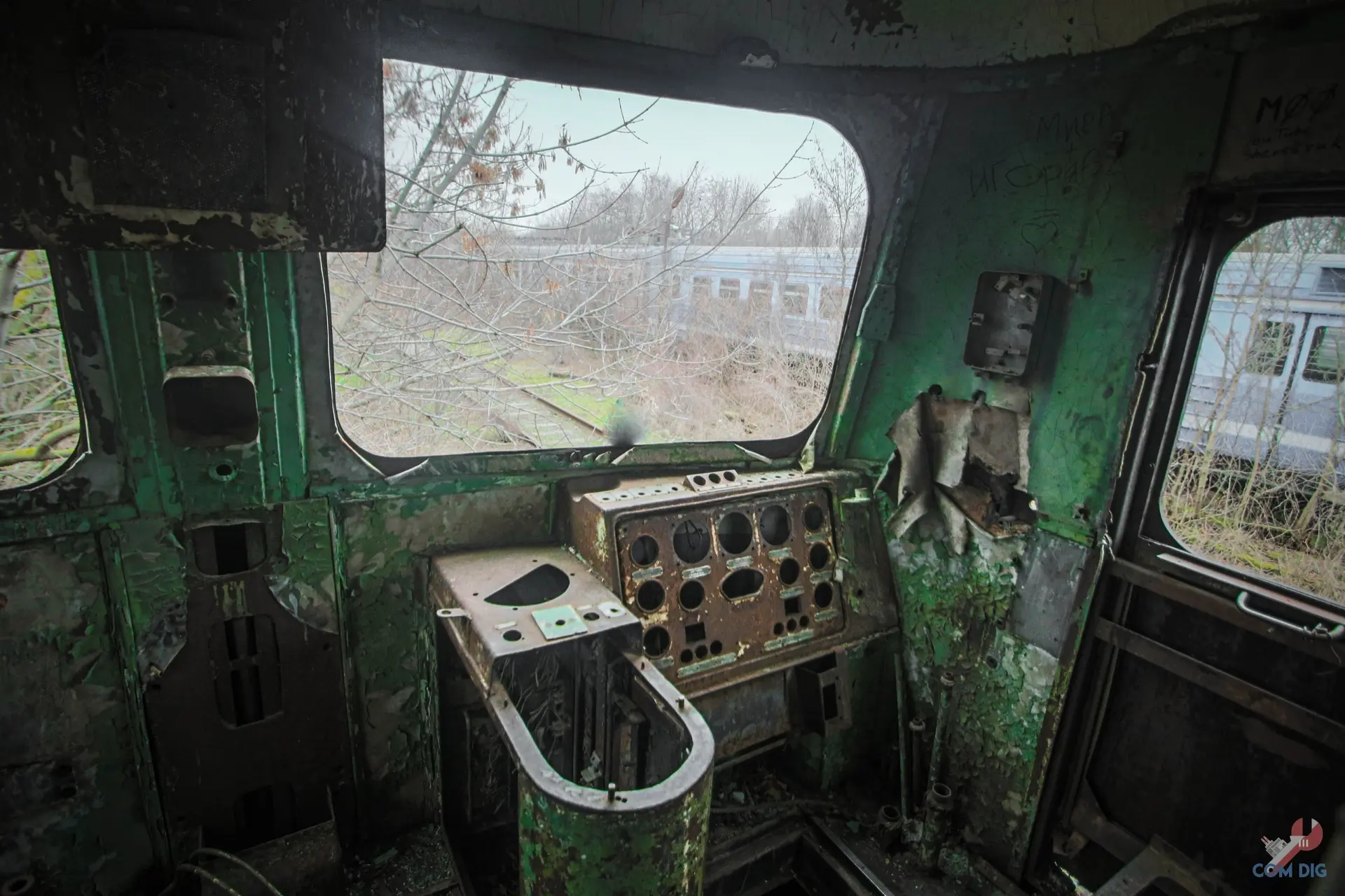 Возникает вопрос: что она делает здесь, в полуразграбленном состоянии, а не на территории отстойника? Ответ прост — мародёрство. Эту технику либо не довезли до отстойника «Буряковки», либо, наоборот, специально оттащили из отстойника подальше в лес, чтобы спокойно разбирать на запчасти. В конце 80-х детали для грузовиков, автобусов и бульдозеров были на вес золота.