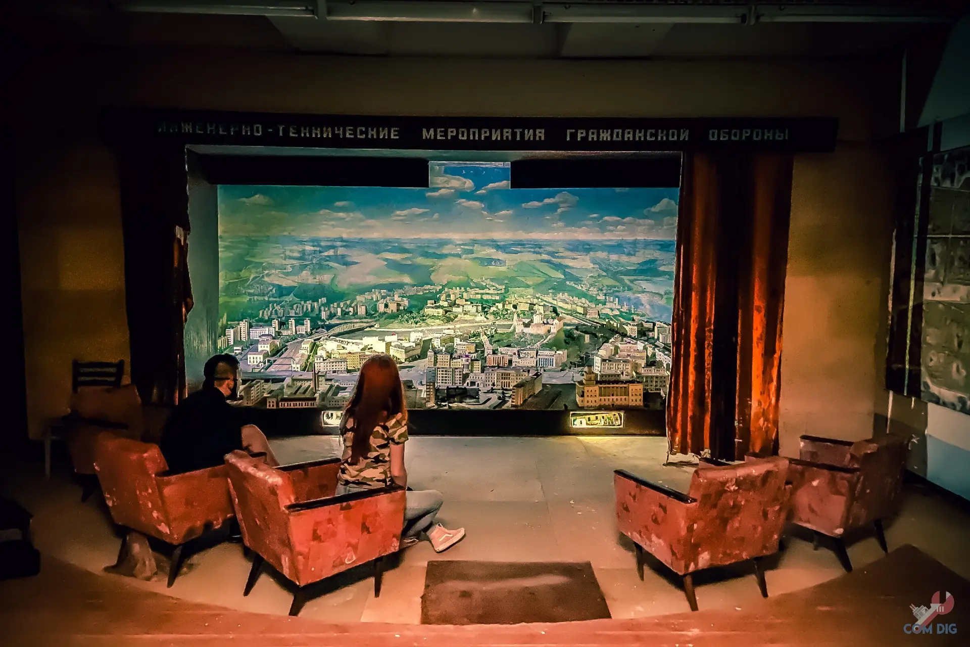 Всё это когда-то служило наглядными пособиями для уроков гражданской обороны СССР. Но жемчужина места это огромный, детализированный макет целого города! Дома разных проектов, мосты... и подсветка до сих пор работает! Это невероятно.