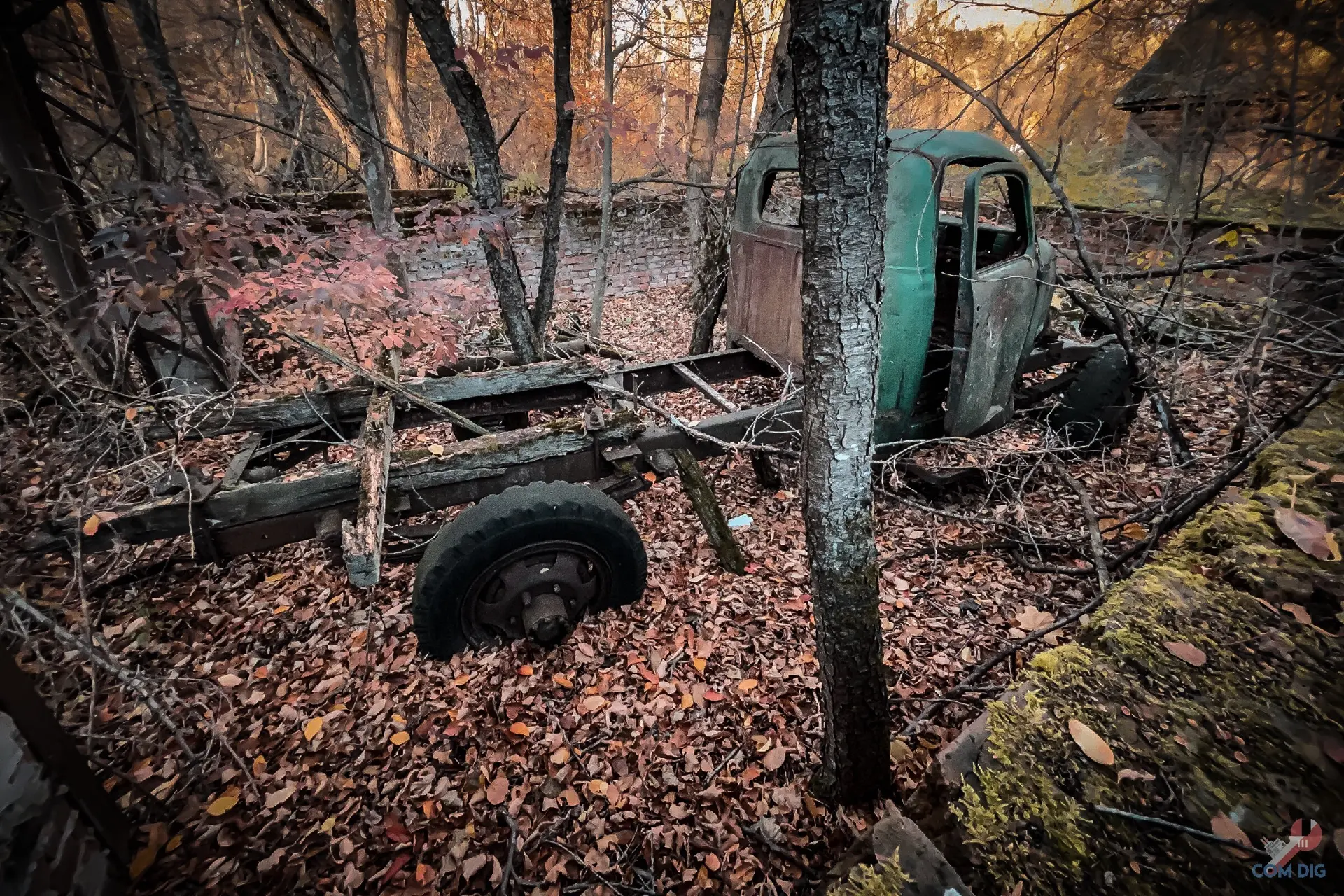 Сейчас, спустя 40 лет, в самой Припяти гражданских автомобилей почти не осталось. Они стали огромной редкостью. И тем ценнее находка в селе Новошепеличи: в полностью разобранном гараже всё это время стоял старый грузовик, вероятно, принадлежавший местному фермеру.