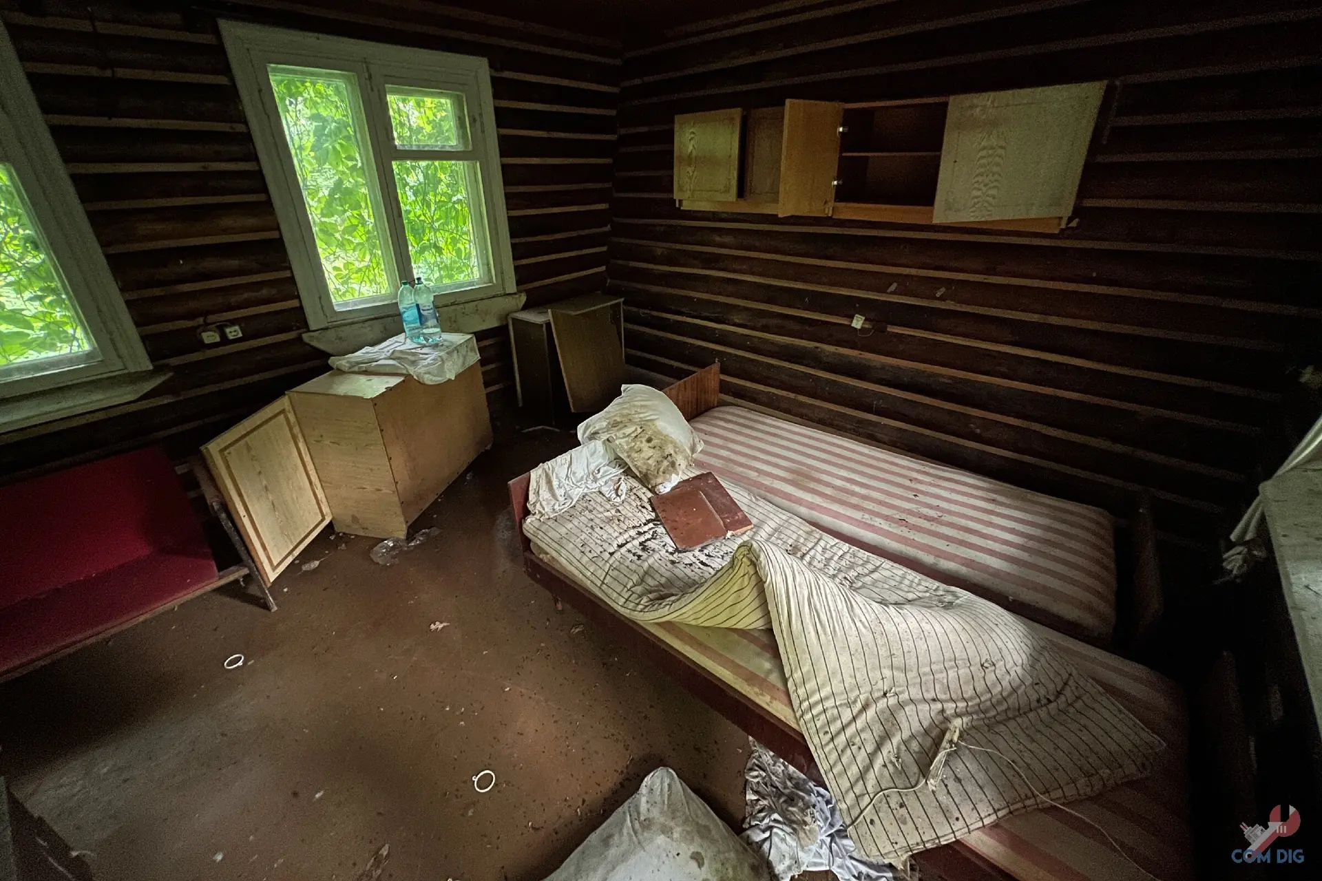 Заброшенный пионерский лагерь, полностью поглощённый густой растительностью. Стены этих домиков больше никогда не услышат детских голосов и смеха. Теперь здесь поют только птицы, а насекомые ползают по отсыревшим матрасам на койках.