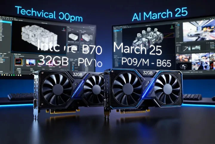 Intel готовит новые профессиональные видеокарты Arc Pro B70 и B65 на Battlemage: по утечке, обе модели получат 32 ГБ ECC-памяти, а старшая версия предложит 32 Xe2-ядра и более высокий лимит энергопотребления. Новинки, похоже, нацелены на рабочие станции, AI и создателей контента, а не на геймеров.